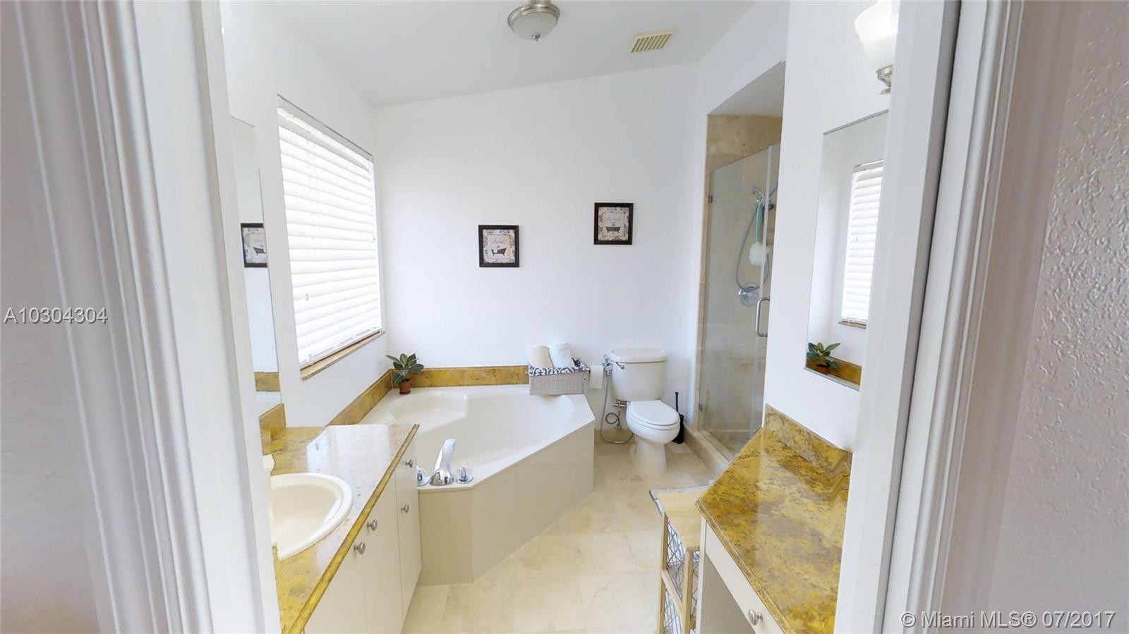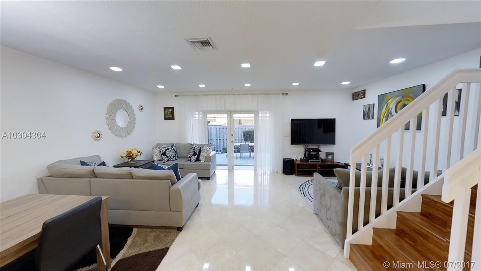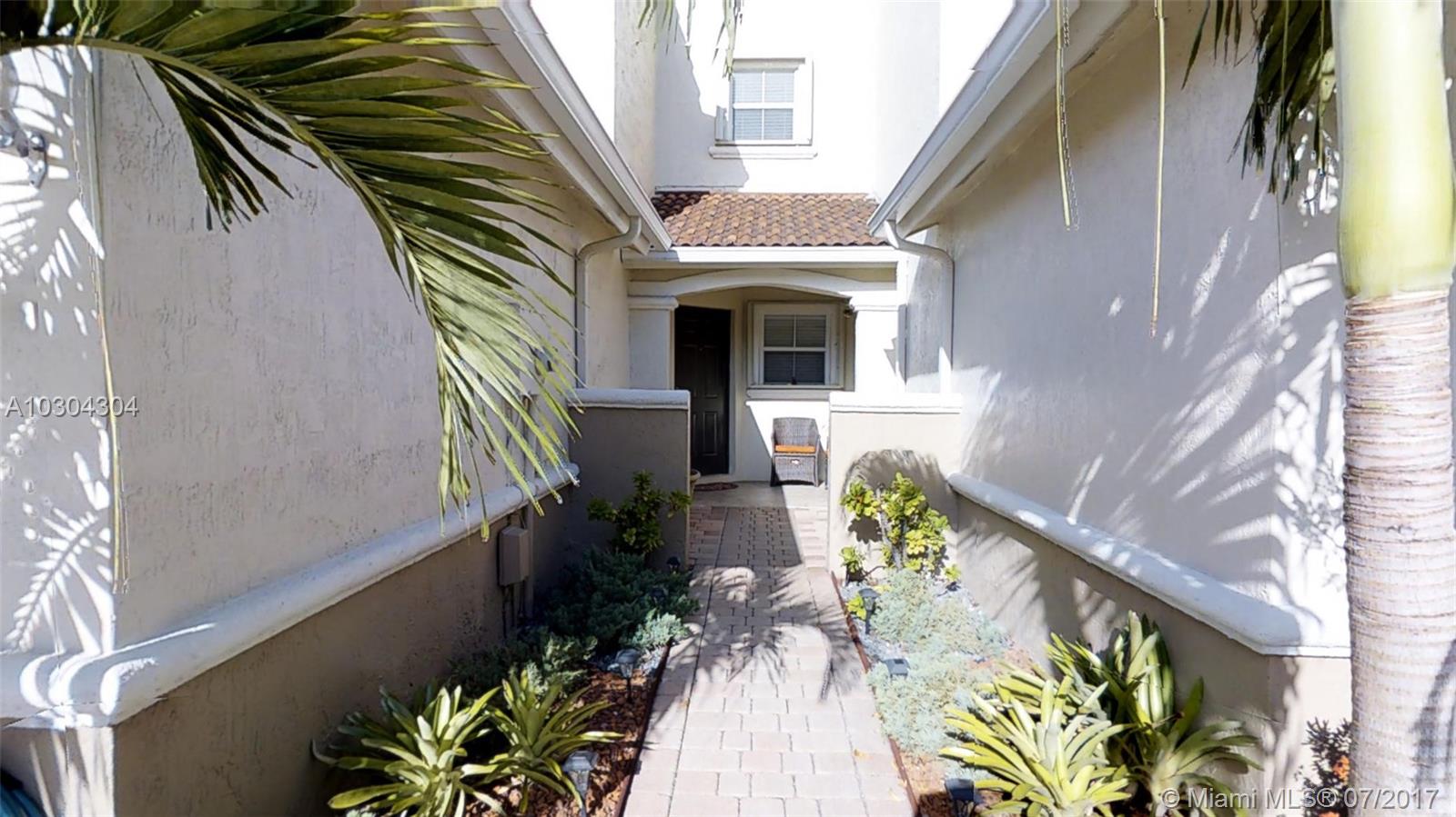 Home sweet home!!! Impeccable Townhouse with 3 Bed 2.5 Bath, everything has been upgraded, modern kitchen with granite countertops, hurricanes accordion shutters, gorgeous landscaping, marble floor in 1st floor and wood laminated in 2nd-floor, pavers tile in patio and french doors. One (1) Bedroom on the 1st level, and two (2) Bedrooms upstairs. Excellent location, gated community " Dimensions at Doral" only 90 townhouses and low association fee ($133 per month)
