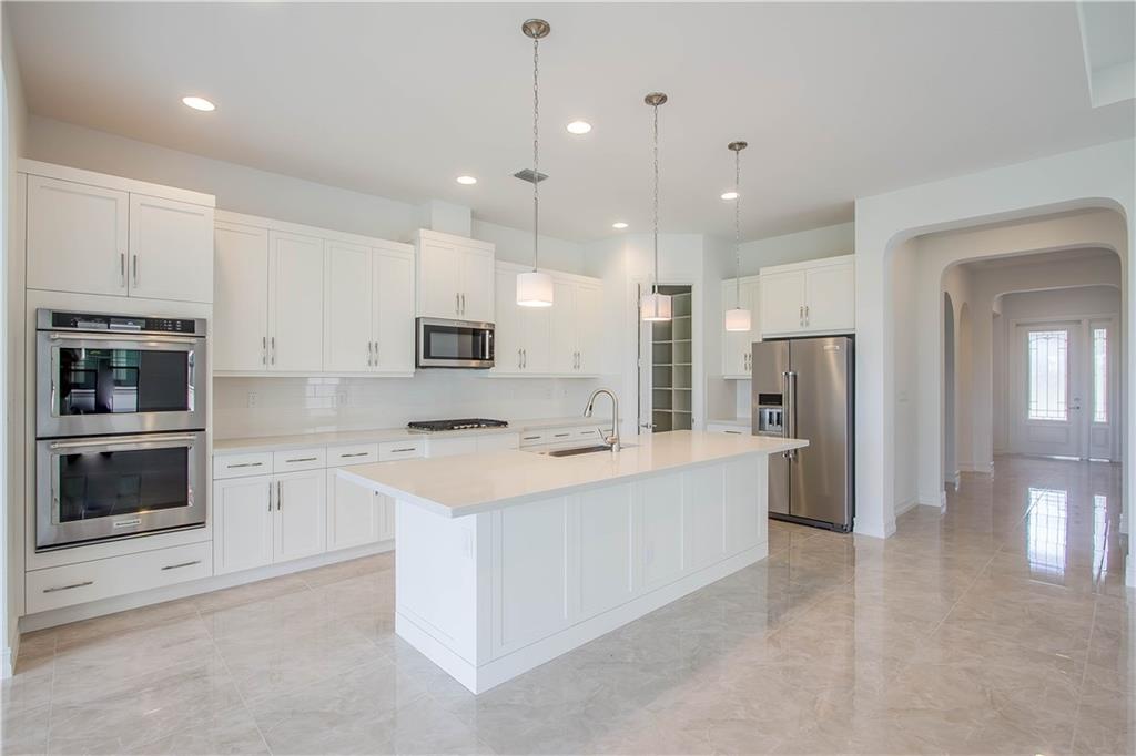 NEVER LIVED IN READY FOR IMMEDIATE OCCUPANCY! 4 BEDROOM 3 BATH TRIPLE SPLIT FLOOR PLAN ON INTERIOR LOCATION WITH TONS OF UPGRADES. STONE FRONT ADDS GREAT CURB APPEAL. SPACIOUS BACKYARD AND LARGE COVERED PATIO WITH PLENTY OF ROOM FOR A POOL. KITCHEN(KITCHEN AID SS) HAS 5 BURNER GAS RANGE, 2 OVENS, QUARTZ COUNTERS, FARMHOUSE SINK, ALABASTER MAPLE CABINETS, SUBWAY BACK SPLASH & WALK IN PANTRY . OPEN TO GREAT ROOM PLUS CASUAL DINING AREA. UPGRADED BATHS. GUARD GATED, CLUBHOUSE,RESORT POOL , GYM. TOP SCHOOLS!