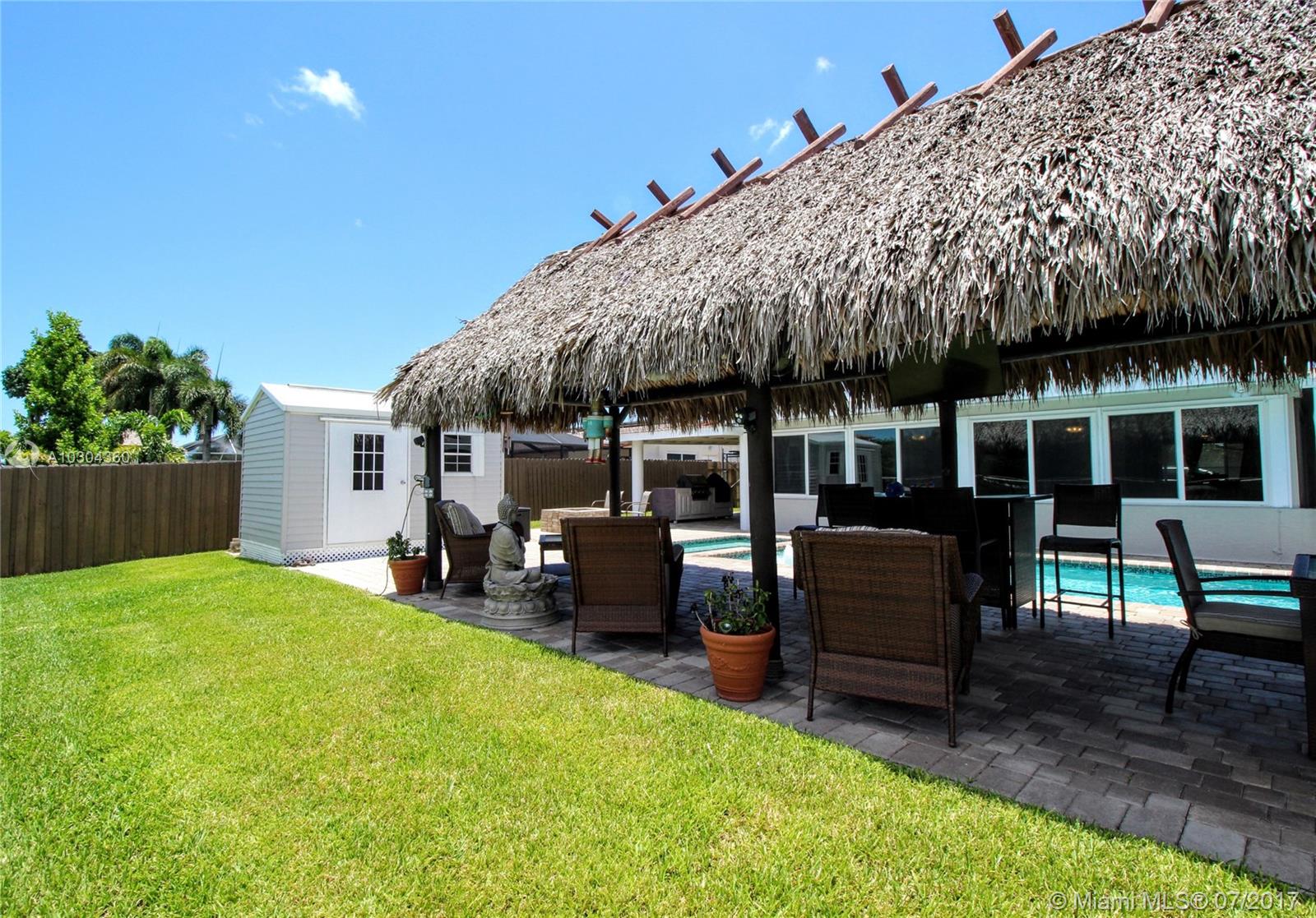Stunning 4 bed 3 bath home fully updated on the water. Your private resort overlooking the water view, pool/spa, Tiki Gazebo that sits 20+. Home has impact windows for protection & large shed out back for storage. Updated Kitchen w/Granite counter-tops, wood cabinets, & breakfast area & added snack bar area. Natural light illuminates the home as well as recessed & drop lighting throughout home. Large master suite w/sitting area, fully updated master bath with dual sinks, updated shower, and big walk-in closet. The floors are covered in tile in living areas and wood in the 3 of the 4 bedrooms. Large driveway w/brick pavers, which travel all the way around the home & pool. This Home has it all from the minute you pull up to the relaxing backyard ready for entertaining your family & friends.