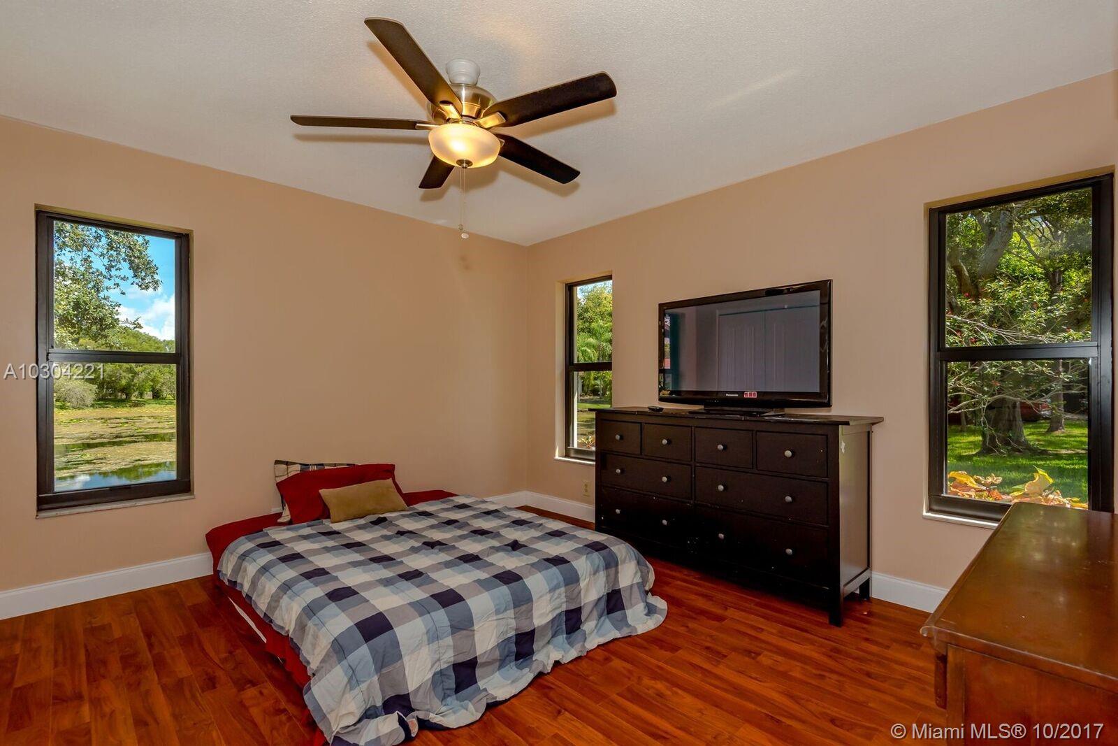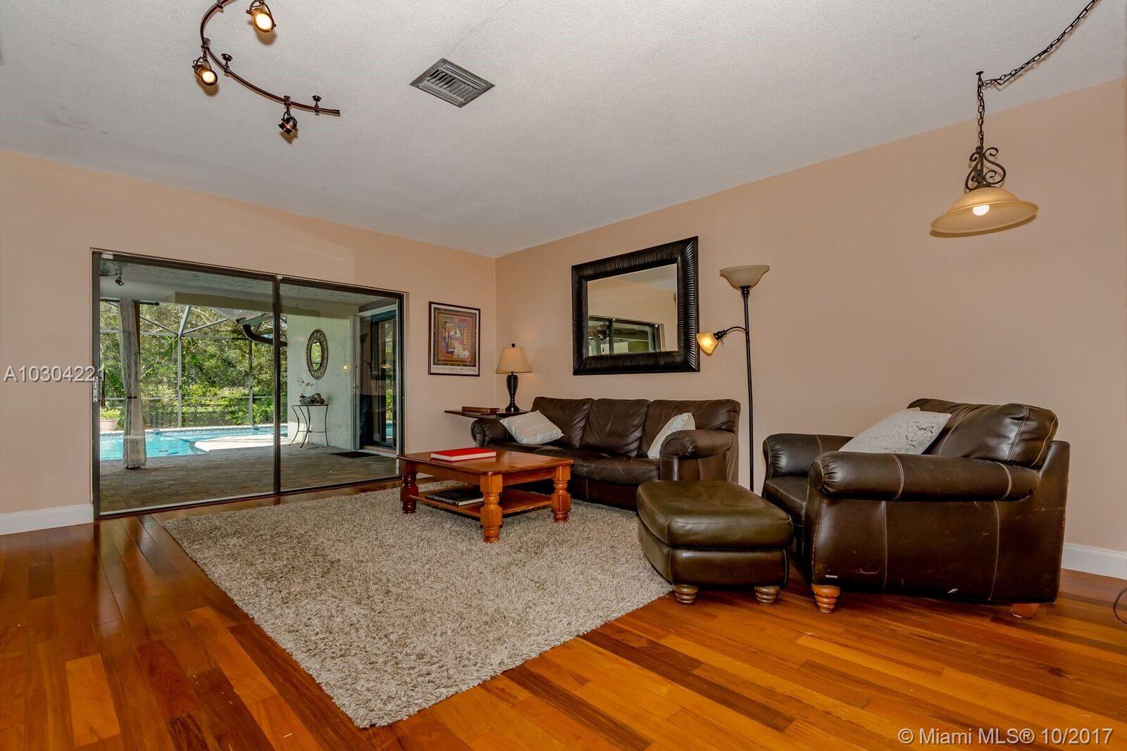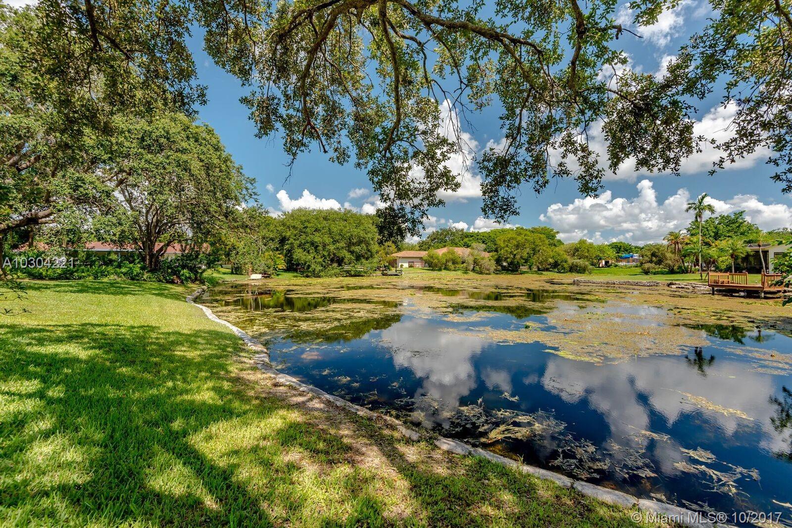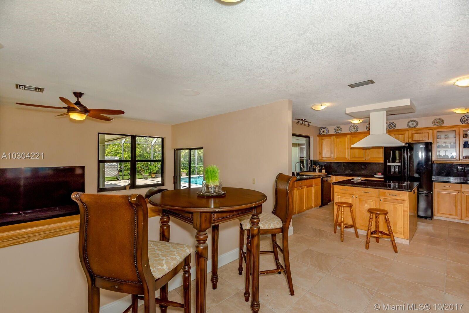 Share your lake with only 4 neighbors! Cul-de-sac home in Davie. Updated kitchen with granite and wood cabinets. Impact windows and accordion shutters for sliders. Large cooking island. Screened Over-sized pool and hot tub. Wood burning fireplace, outside shower, lots of storage. Roof post Wilma. Mature trees. Hardwood and tile throughout, no carpet. Lot is large enough for horses! No HOA. 9,000+ sq ft of lake plus over 40,000 sq ft of yard.