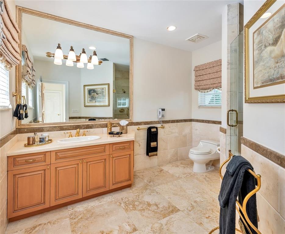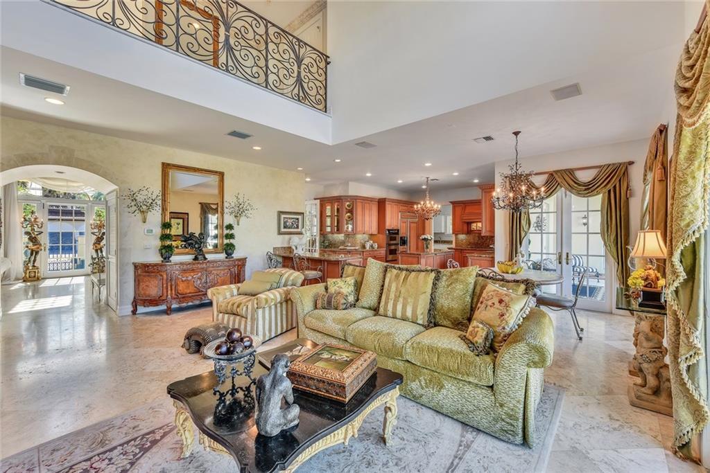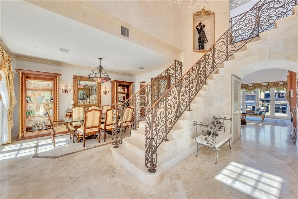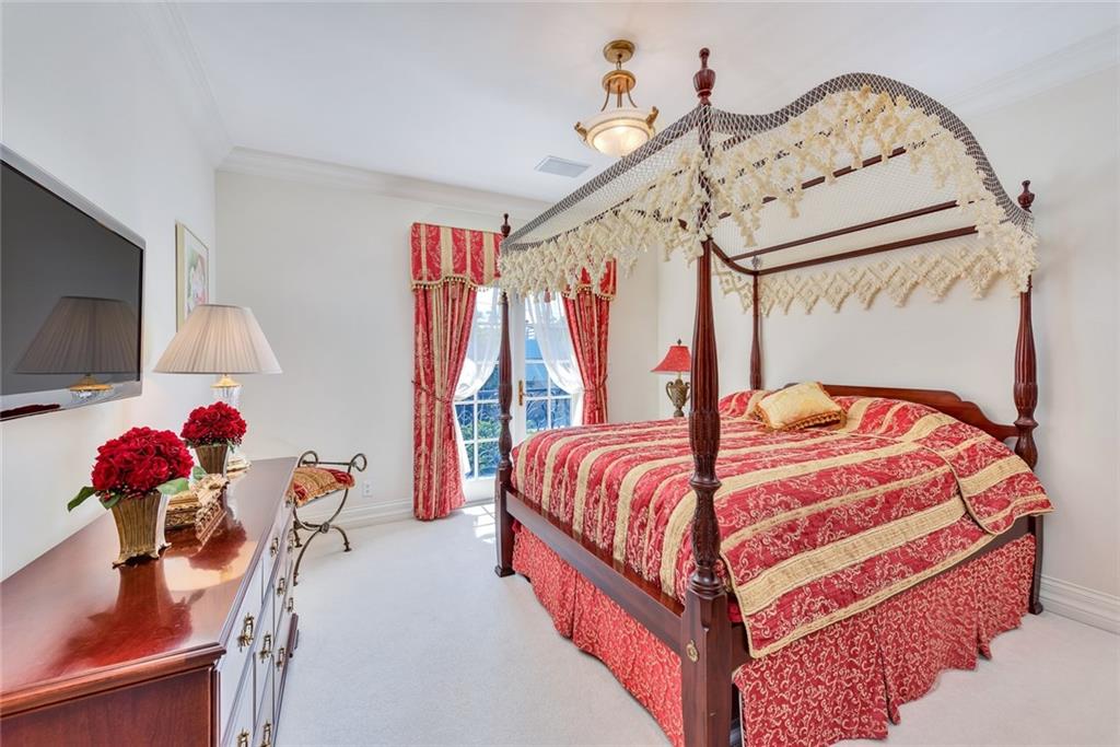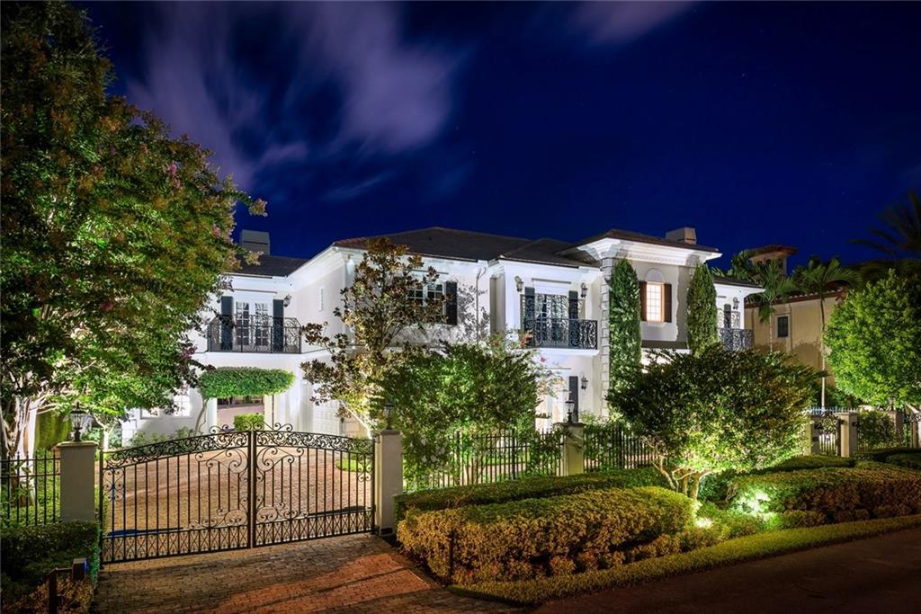 Walled & gated for privacy & security stunning transitional Georgian-inspired residence shows immaculately. Beautiful landscaped resort style gardens, pool area & dock.Open Chef's kitchen,breakfast area & family room blend for casual entertaining.Welcoming formal living room with fireplace adjoining dining room. Separate pool/guest house.Potentially two bedroom suites 1st level. Ultra-luxurious Master Suite features fireplace,private balcony, separate his/her bathrooms & dressing rooms + 3 bedroom Suites.