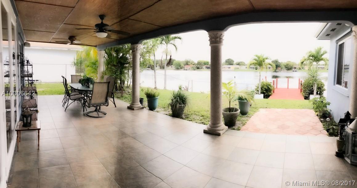 Charming lake front home with custom wood deck and incredible lake view from almost every room. Home features 3bed/3bath, open floor plan home, with over 2,000 square feet of living space, formal living, dining and family rooms overlooking the lake, well-maintained kitchen, tile floors throughout, and a circular driveway that fits four-to-five cars. The one-car garage is enclosed with A/C and has a built-in 4ft x 11ft storage. Home also features custom crown-moldings and chair rail in selected rooms, plenty of room in backyard for pool beyond the covered patio. Sits on quiet street with no homes facing the front. Excellent schools and conveniently located near Pembroke Pines shops and restaurant. Appraised and priced to sell!