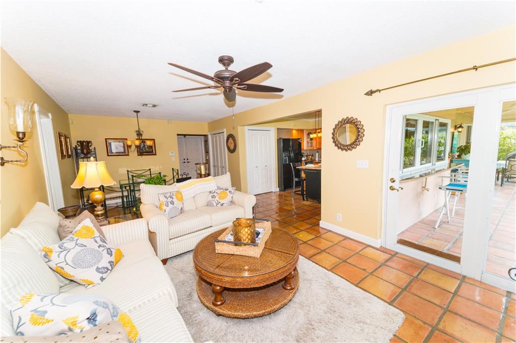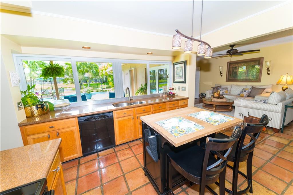 Just a few steps in the front door and you will see the charm of the home and the tranquil water view this lovely property offers. It sits on a unique position on the canal allowing a wide water view. All Kitchen windows and the two french doors have impact glass, the rest of the windows have accordion shutters. New AC last May. Water heater 3 yrs young. Updated kitchen and baths, terracotta tiles through out that flow out to patio. Plantation shutters, extended eat in kitchen. Split floor plan.