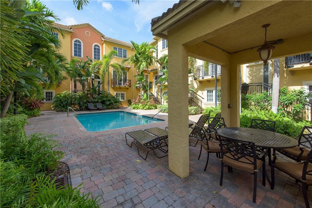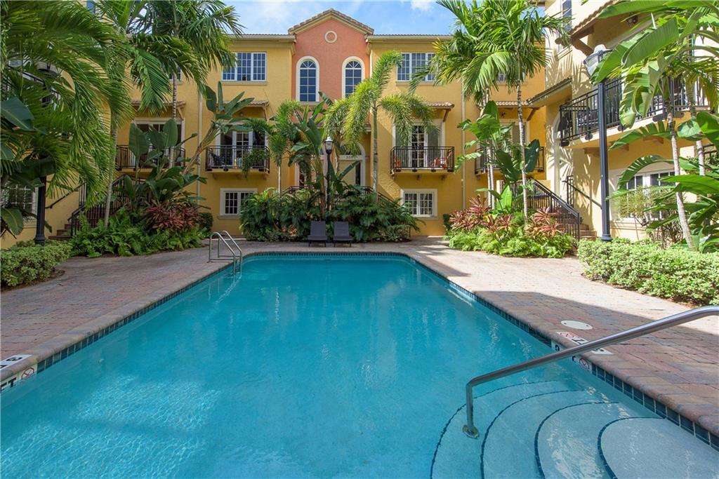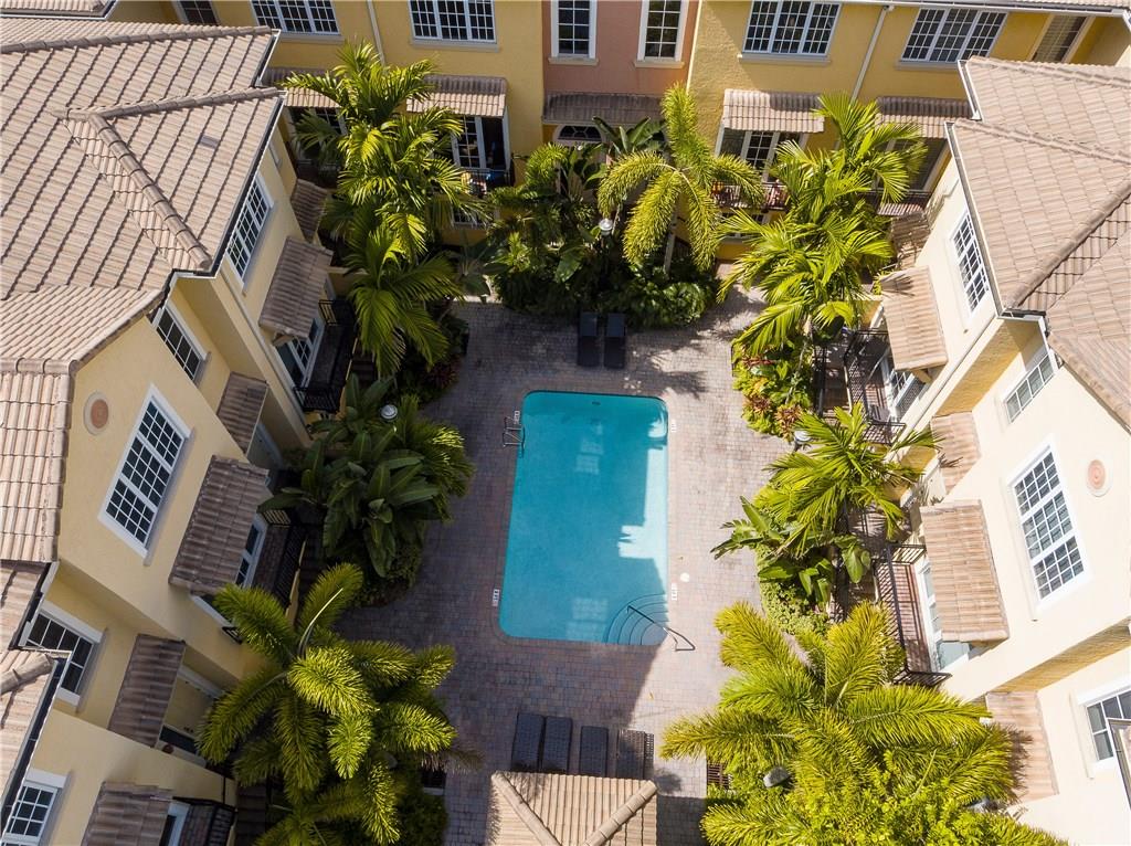 What a find so close to downtown? - Villa Tuscany. Cool interiors with high ceilings, stainless appliances, granite tops, closet built-ins. Ideal corner home has 2 balconies w/ windows on 3 sides creating sunlit living areas. The flexible floor plan has a 2-bay garage with ground level en-suite guest bedroom, open living areas on 2nd with Master & guest suites on top floor. Gated boutique complex w/center courtyard heated pool. A/C and Fridge new in 2017. Maintenance covers windstorm insurance.
