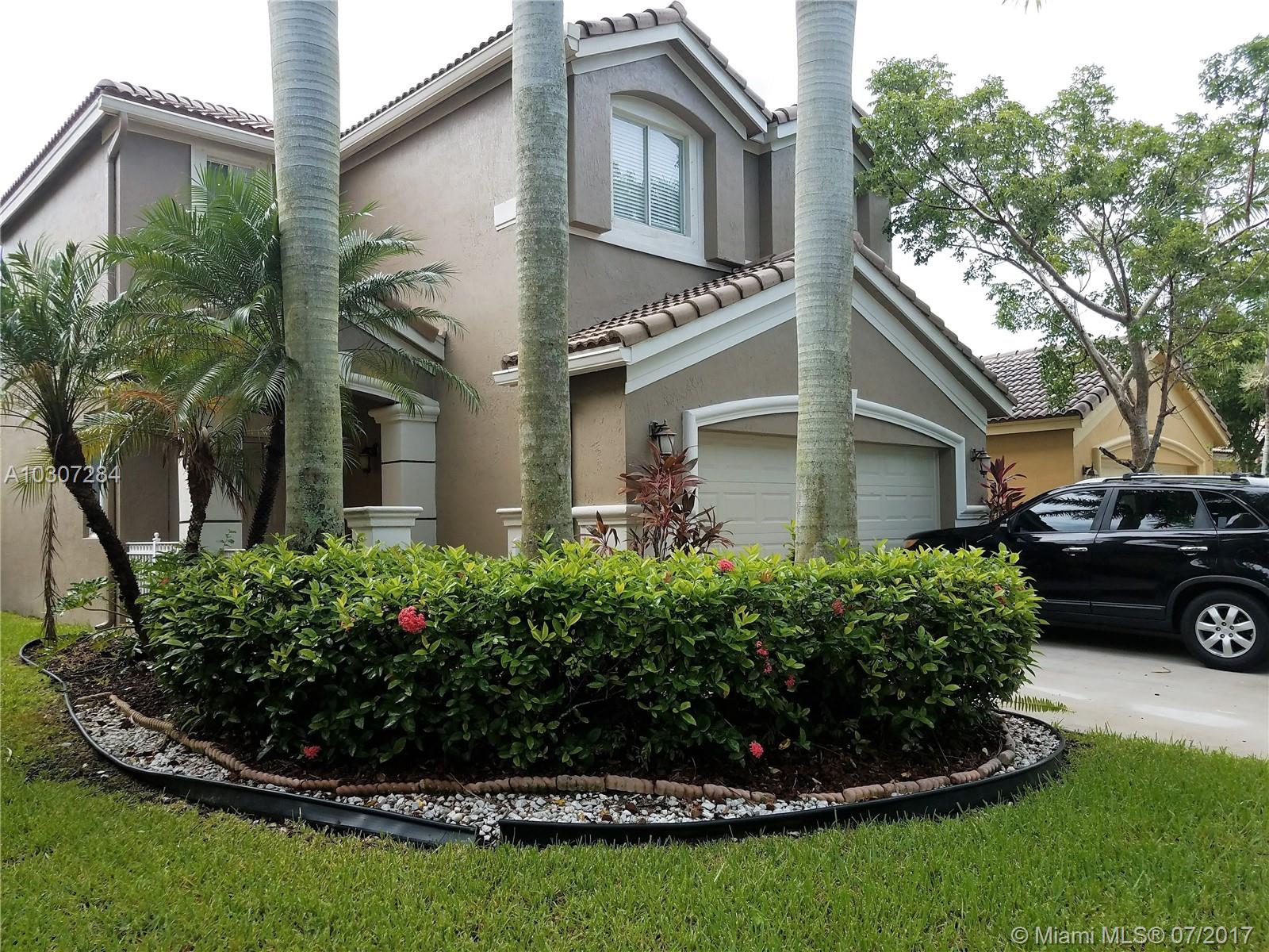 BEAUTIFUL SPACIOUS IMMACULATE SINGLE FAMILY HOME IN MINT CONDITION . 4 BEDROOM ~ 2,5 BATHROOM ~ 2 CAR GARAGES ~ 2 STORY . LOCATED IN THE BEST GATED COMMUNITY OF WESTON ~ SAVANNA~ FLORIDA IMAGINE YOURSELF RELAXING IN YOUR BACKYARD. FRESHLY PAINTED/ NEUTRAL TONES. UPGRADED KITCHEN. FORMAL LIVING AND DINNING ROOM. CERAMIC TILE ON THE GROUND FLOOR AND CARPET IN SECOND FLOOR. SEPARATE LAUNDRY ROOM . RESORT CLUBHOUSE; POOLS WITH KIDS SLIDE, BASKETBALL COURTS, MINI GOLF, PLAYGROUND, SOCCER COURTS AND MORE. GREAT SCHOOL DISTRICT . EASY ACCESS TO HIGHWAYS . HURRY!!!! WILL GO FAST!!!!!