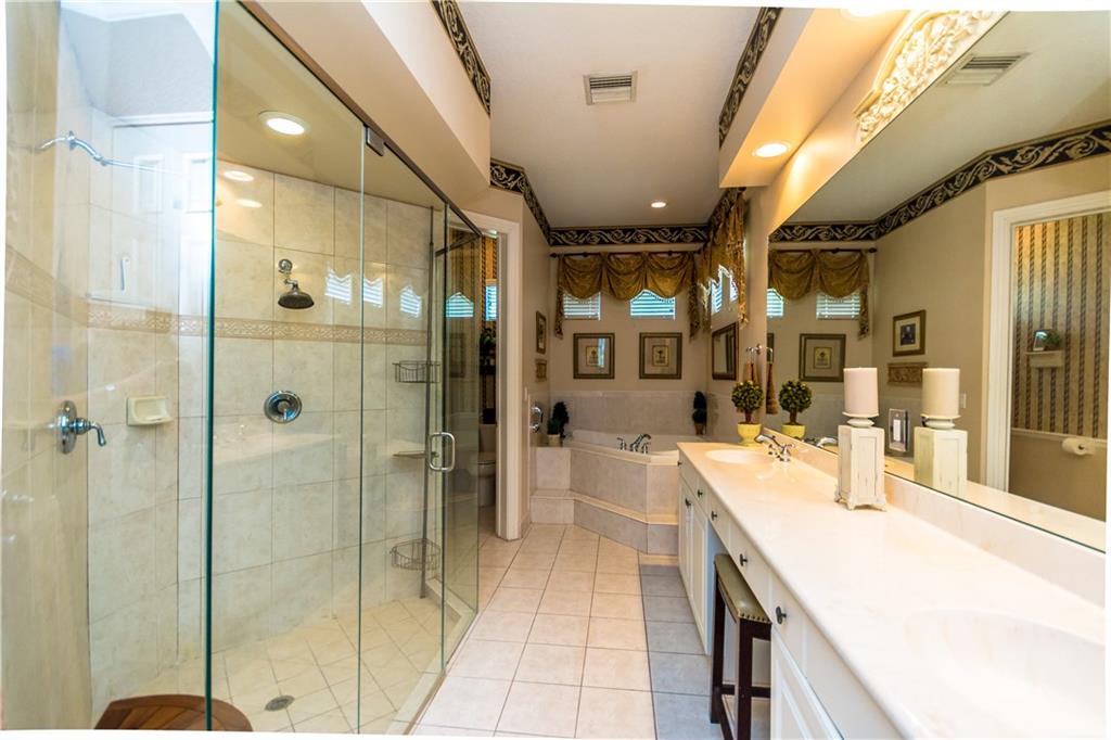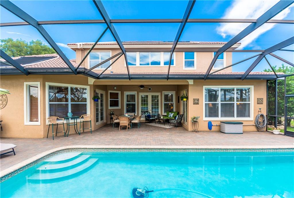Immaculate 5 BD/4 BA Waterfront Pool Home w/3-Car Garage & amazing water views In Prestigious Gated Community, Popular Mariner Model Home w/2-Staircases, Split Floorplan, 1st floor Master, Spacious Kitchen, Island, Stainless Steel Appliances, convection Oven, French Doors To Screened-In Patio, Pool & hot tub, Huge Master w/Sitting Area, Master Spa w/Frameless Shower, Separate Tub, Dual Sinks, A-Schools, Resort Amenities.
