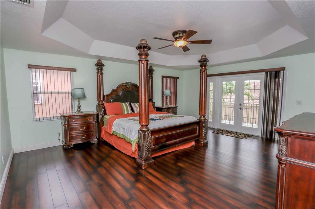 GORGEOUS TWO STORY HOME IN RESORT STYLE GUARD GATED COMMUNITY. TILE FLOORING ON THE FIRST FLOOR, BEAUTIFUL BRAND NEW DARK LAMINATE WOOD FLOORING ON STAIRS & THROUGHOUT UPPER LEVEL. EXPANSIVE MASTER WITH FRENCH DOORS THAT LEAD OUT TO COVERED BALCONY WHICH RUNS FULL LENGTH OF HOUSE. ONE BEDROOM & FULL BATH ON FIRST FLOOR. LARGE KITCHEN W/ CENTER ISLAND OVERLOOKING LIVING ROOM. LARGE FORMAL DINING ROOM GREAT FOR ENTERTAINING. COVERED PATIO AREA, FULLY FENCED BACKYARD FOR PRIVACY, ROOM FOR A POOL.