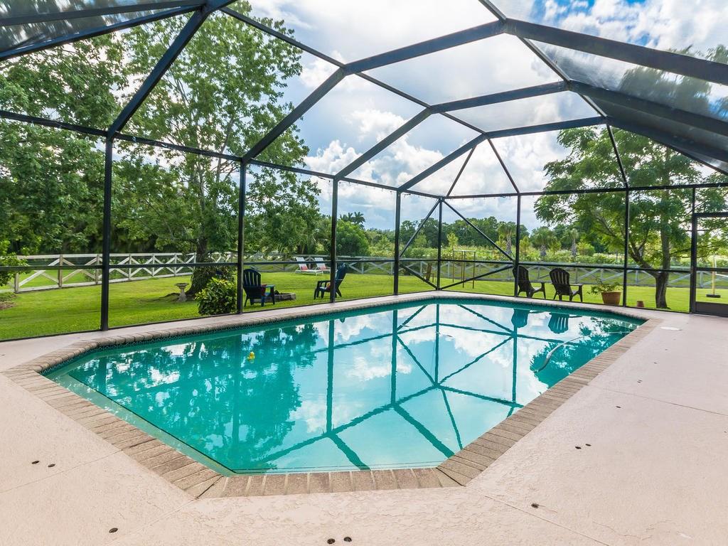 Beautiful 4 bedroom PLUS an office with French pocket doors,3 full bathrooms. Builders acre located at the end of a cul-de-sac, with a private 10 acre preserve behind it. New white "shaker" eat in kitchen with granite counters ,self closing drawers and upgraded appliances. Central vac, alarm, hurricane shutters, dome screen pool with child safety net. Zoned A/C's,security cameras, completly fenced back yard. Sprinklers on well, CITY water! New hurricane garage door! Boat? RV? BRING THEM!