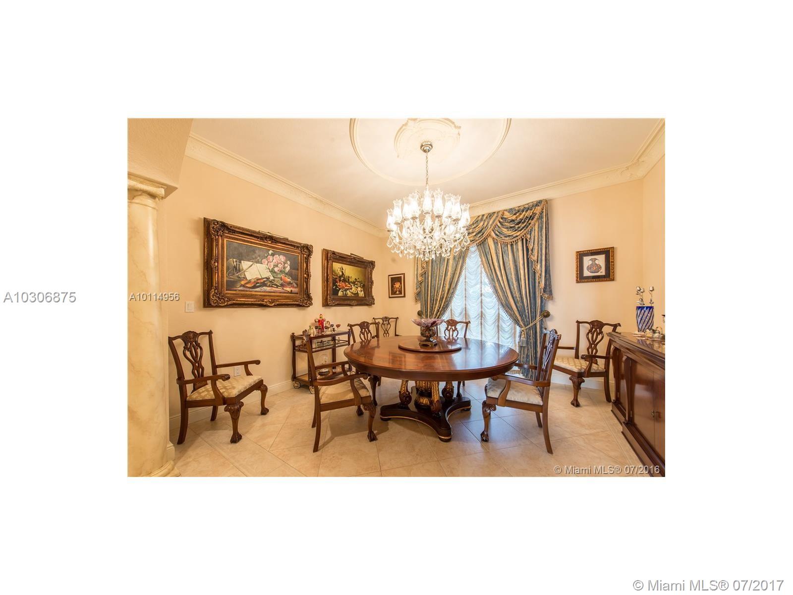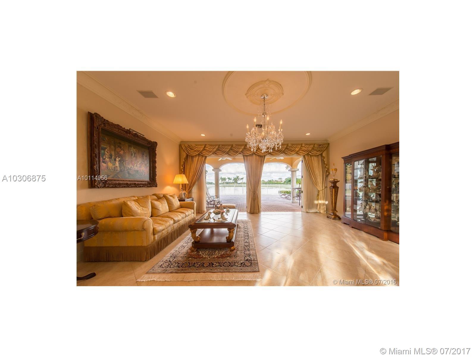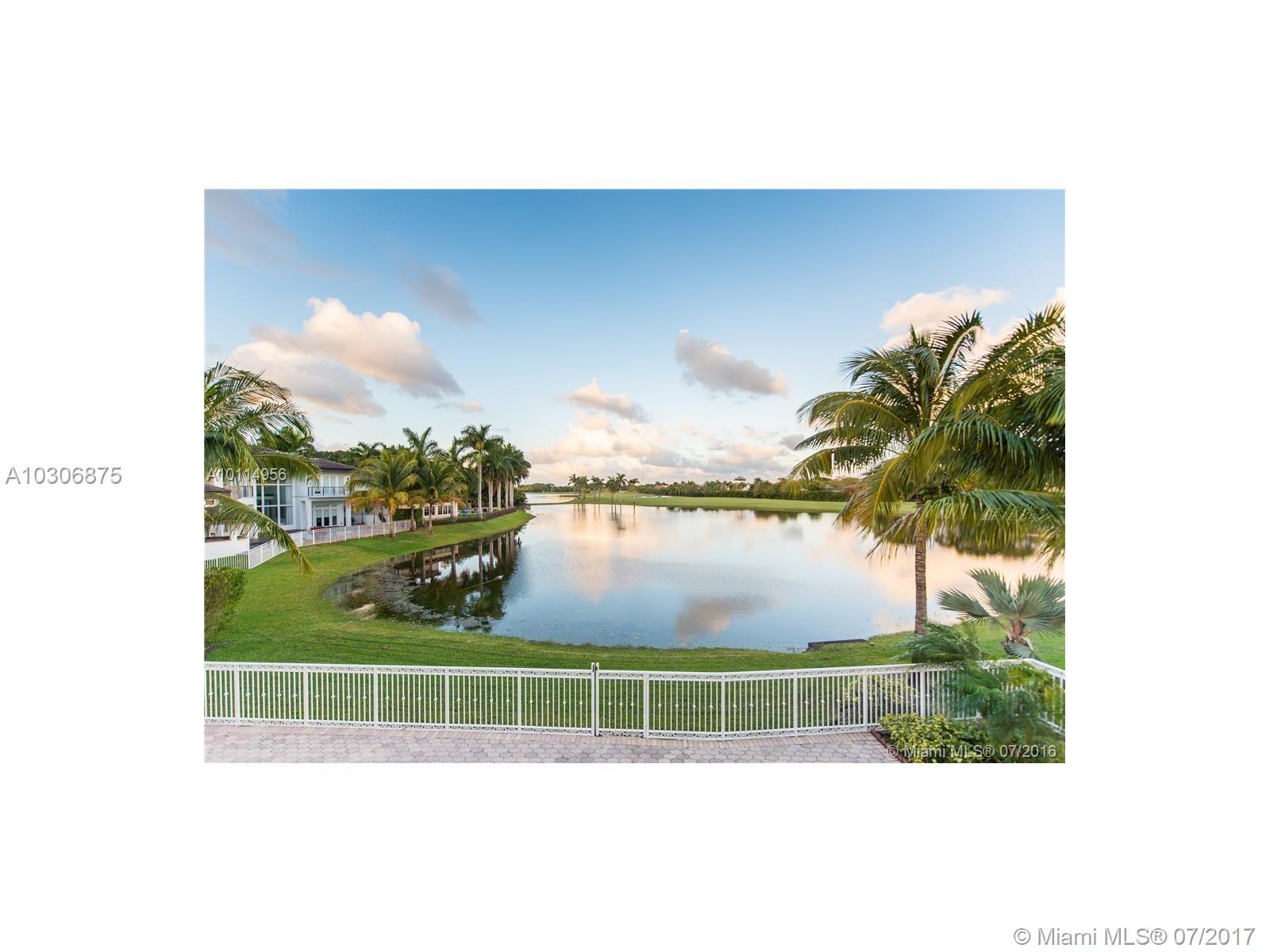 Located in prestigious Doral Estates, this magnificent two-story home is a must see with one of the only reaming unobstructed lake & golf course views in the area. This home features 5 BD/4.5 BA, gourmet kitchen & formal dining & living rooms. Other features include central vac system, walk-in closets, impact glass & French doors. The master suite upstairs, which includes a grand master bath, boasts wall to wall glass doors that open to a large balcony overlooking the waterfront pool and spa. 2 car + golf cart garage.