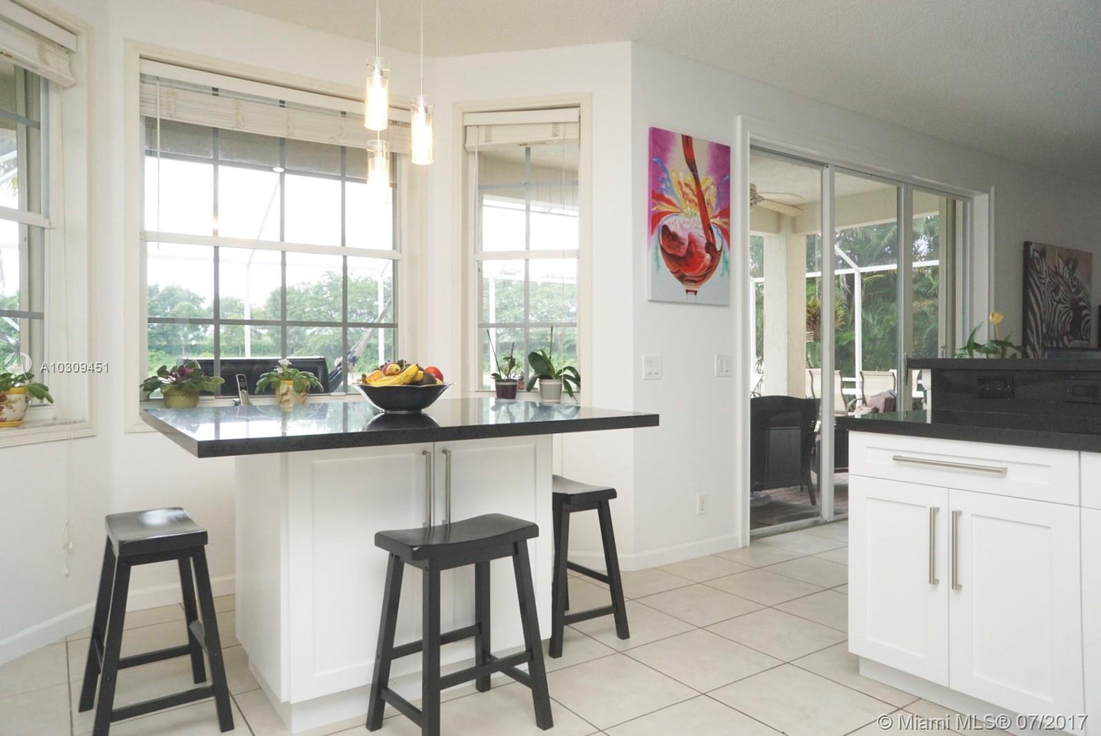 BEAUTIFUL LAKE VIEW HOME! Brand new remodeled kitchen with granite and new cabinets. Brand new waterproof engineered wood looking floors over 10k upgrade. Scratch resistant and water proof. Great for pets and children. Large layout great for a big family. Enjoy the summer with your own screened patio with pool and private lake view. No backyard neighbor. Great location with great schools. Come move to popular Weston, FL The Ridges guard gated community.