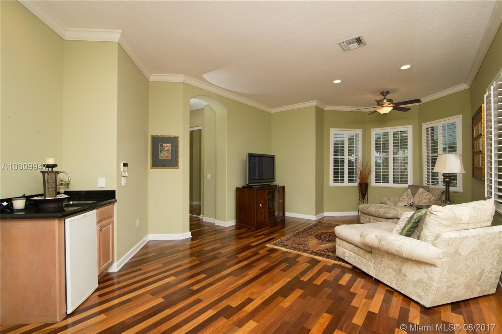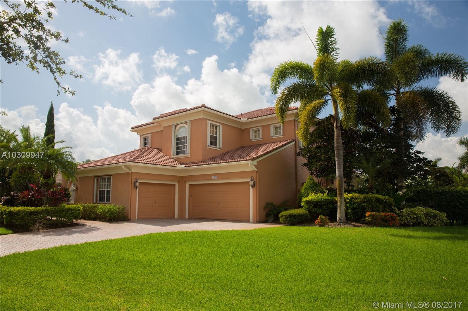 EXQUISITE FAMILY, POOL HOME IN EXCLUSIVE, GATED COMMUNITY IN DAVIE. Corner home on Builder's Acre with Over-sized-Custom Pool, this 2-level home features Formal Living Room with 2-story ceilings, Formal Dining Room, Bedroom & Full bath on main level, Great Room with wet bar, kitchen with island, SS & Black Granite counters, Travertine floors & Brazilian Cherry Wood Floors, Master Suite with sitting area, private balcony, His & Hers bathrooms, Jet Tub, large walk-in shower, 3 more bedrooms & 2 more bathrooms, 3-car garage.