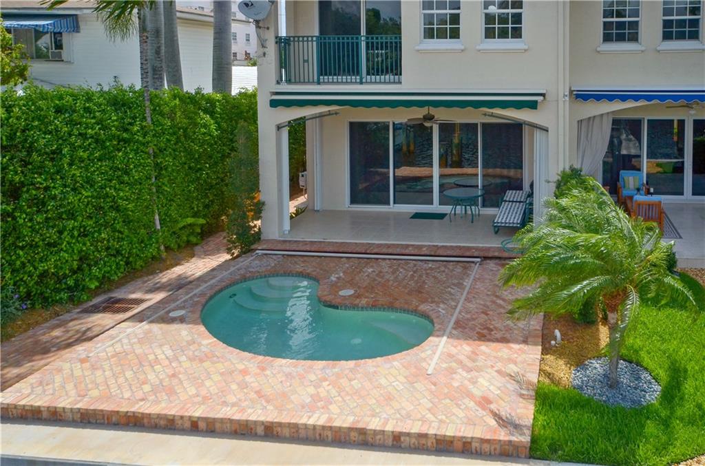 Gorgeous corner unit with private pool and ocean access in the heart of Las Olas. Double wide boat slip has dockage for 45" vessel, no fixed bridges, and dock features 50 amp electric. This townhouse sports two car garage, high impact windows, and security system. Pool deck is extra large, and features a SunSetter retractable awning to keep you cool in the afternoon. Brand new pool pump. Huge master bathroom and master closet give this unit a comfortable feel. Walking distance to beach and Las Olas shops.