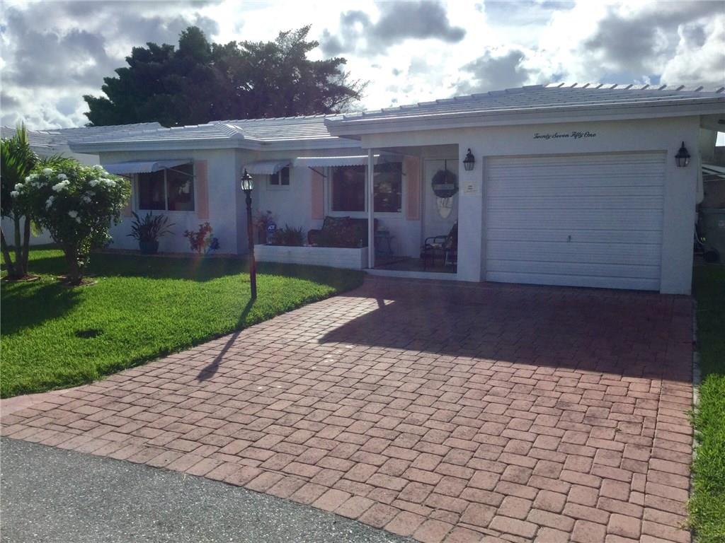 Welcome Home! Single Family House with Two Bedrooms, Two Full Baths, incredibly well maintained, Two Car Pavered Driveway and a one car garage. NEW! Hurricane Impact Windows, Home Re-Insulated, NEWER! Roof, Water Heater, A/C, Front Door, Carpeting and Outdoor Patio in your beautiful private backyard. Low monthly fee in a 55+ Golf Course Community with Clubhouse, Two Large Heated Swimming Pools, Fitness Room and much more.
