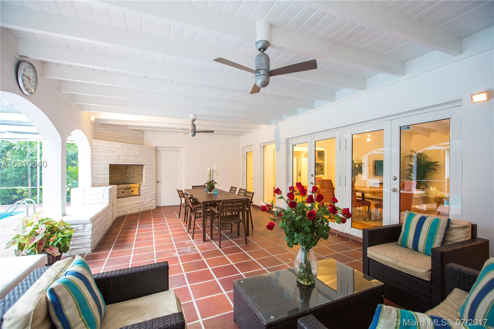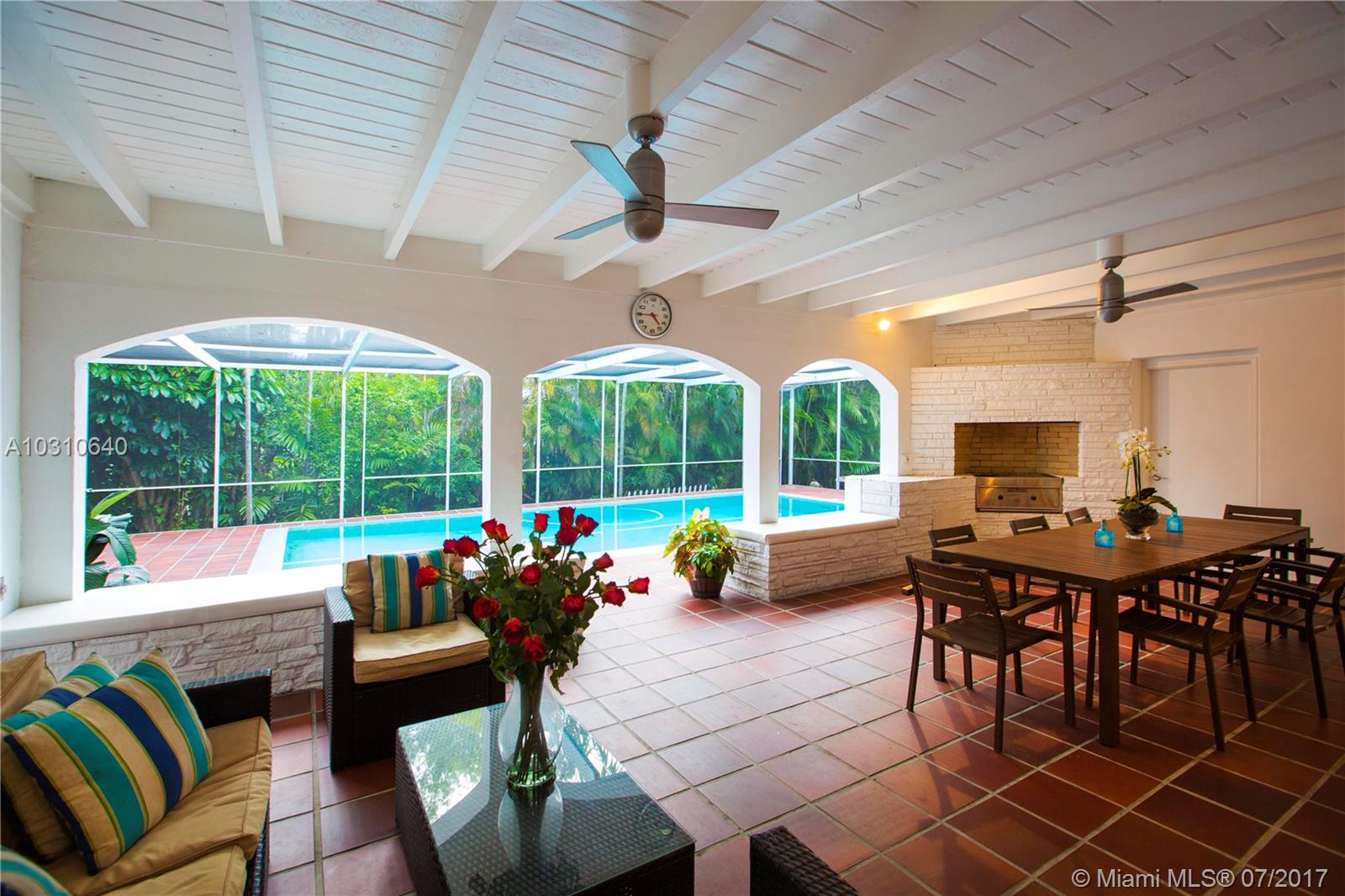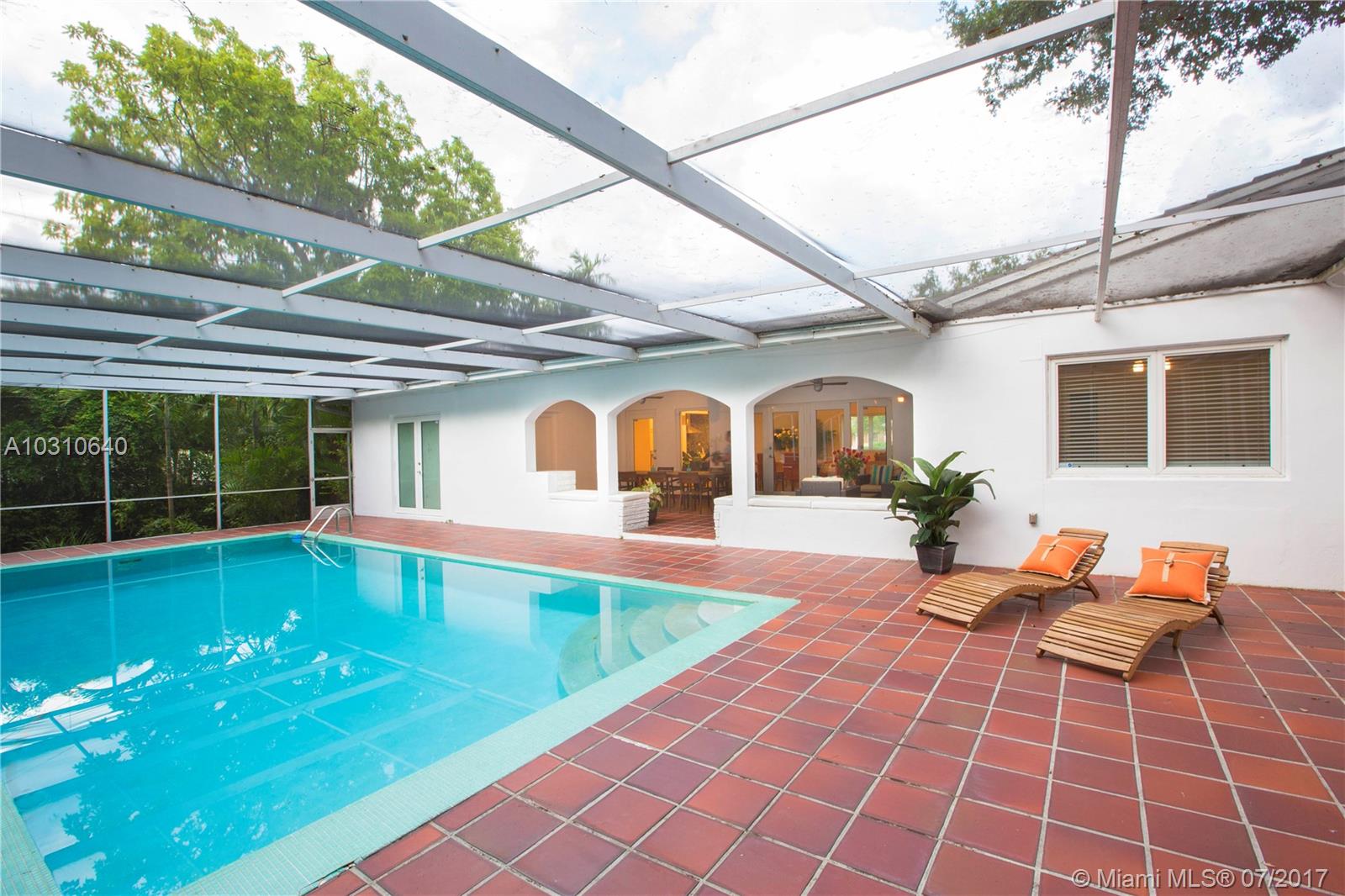 Large Gables home on a wide (10000) lot in a very quiet pocket of Coral Gables, sheltered from traffic. This home has 3-bd 3-bths and has huge areas for entertaining with vaulted ceiling, Galley style kitchen that can be easily added to the vast open living areas, covered patio has a built in BBQ and Cabana Bathroom, overlooking the oversized screened in swimming pool. This home has high end appliances and wood cabinets, impact windows & doors It has a circular driveway & 2 car garage. Great curb appeal!