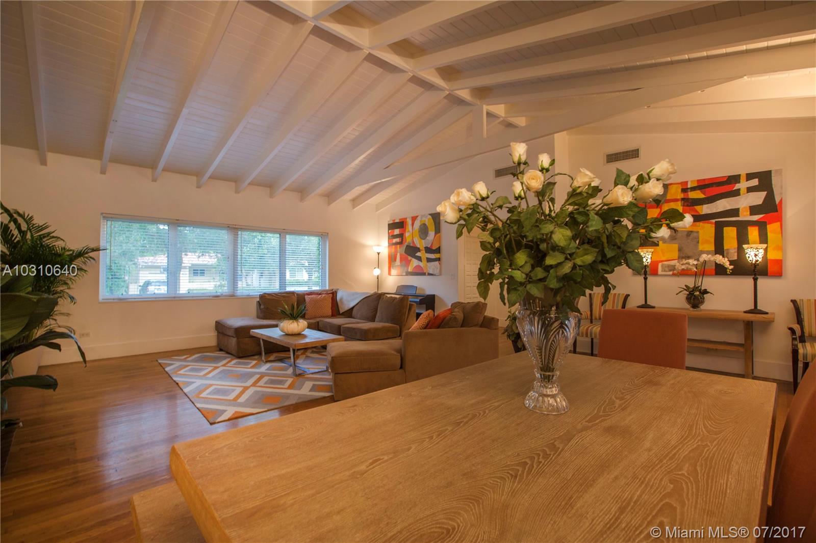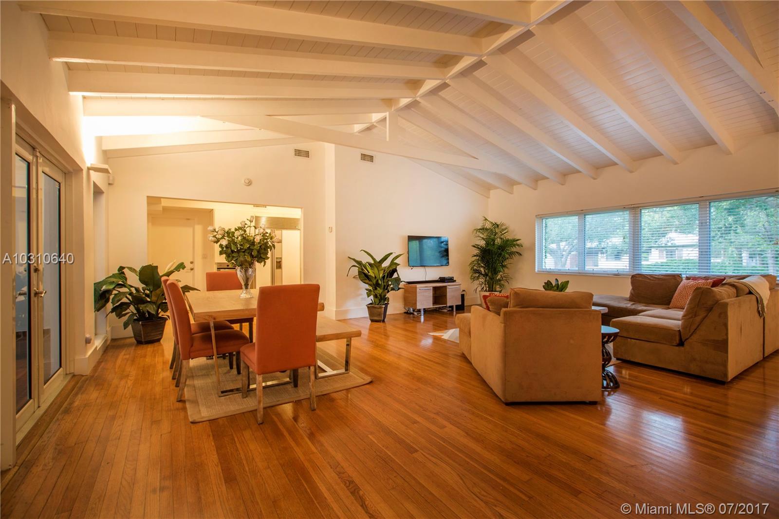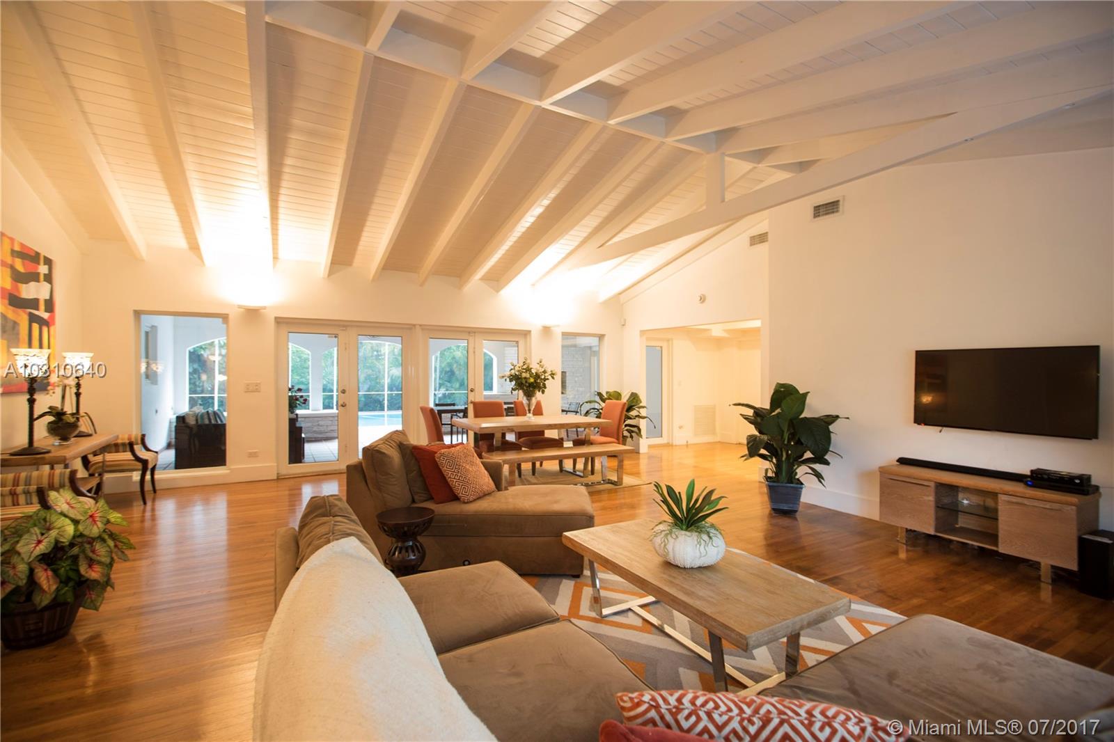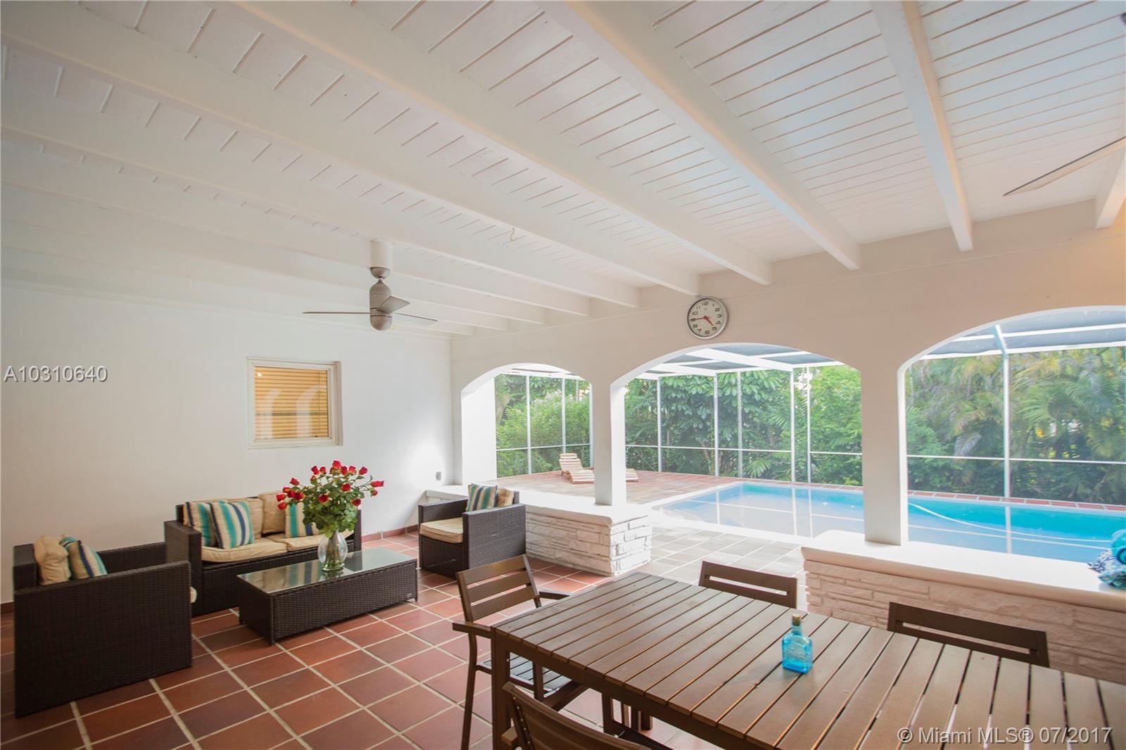 Large Gables home on a wide (10000) lot in a very quiet pocket of Coral Gables, sheltered from traffic. This home has 3-bd 3-bths and has huge areas for entertaining with vaulted ceiling, Galley style kitchen that can be easily added to the vast open living areas, covered patio has a built in BBQ and Cabana Bathroom, overlooking the oversized screened in swimming pool. This home has high end appliances and wood cabinets, impact windows & doors It has a circular driveway & 2 car garage. Great curb appeal!