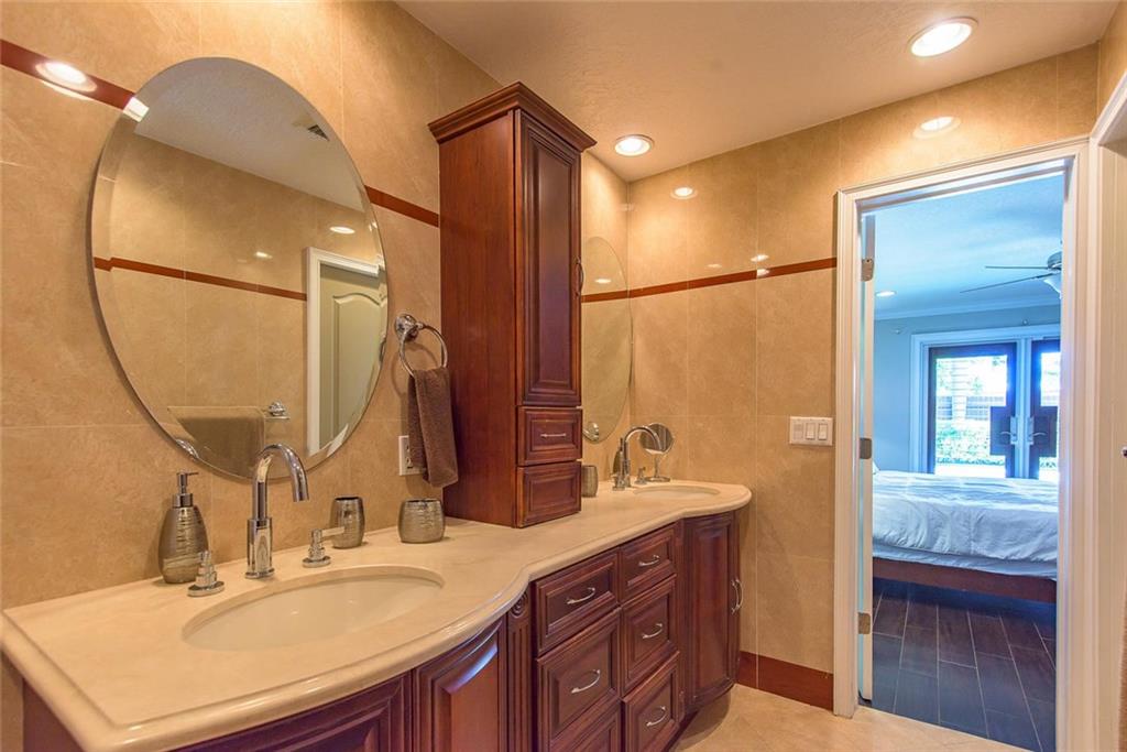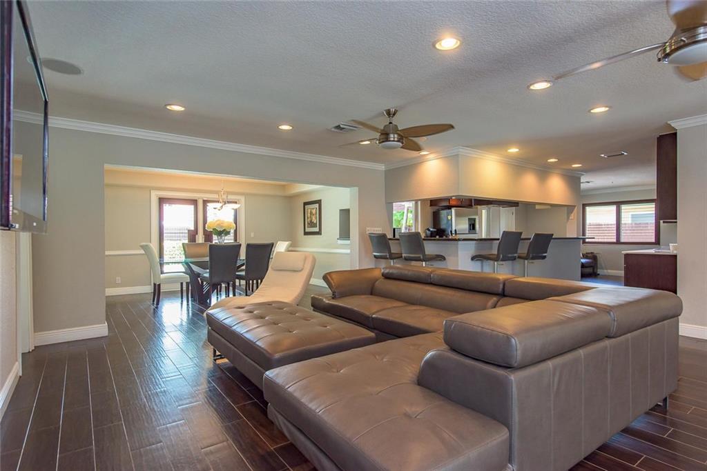 Reduced for immediate sale. Beautifully updated with a transitional feel, this home is South Florida living at it's finest. Featuring two bedrooms and three baths. Espresso colored tile floors throughout the home with an open and relaxing feel.The resort style backyard includes loads of palm trees and landscape lighting for nighttime entertaining. The kitchen is open to all the living areas including formal dining room, living room and family room/office. Super private, fully fenced backyard.