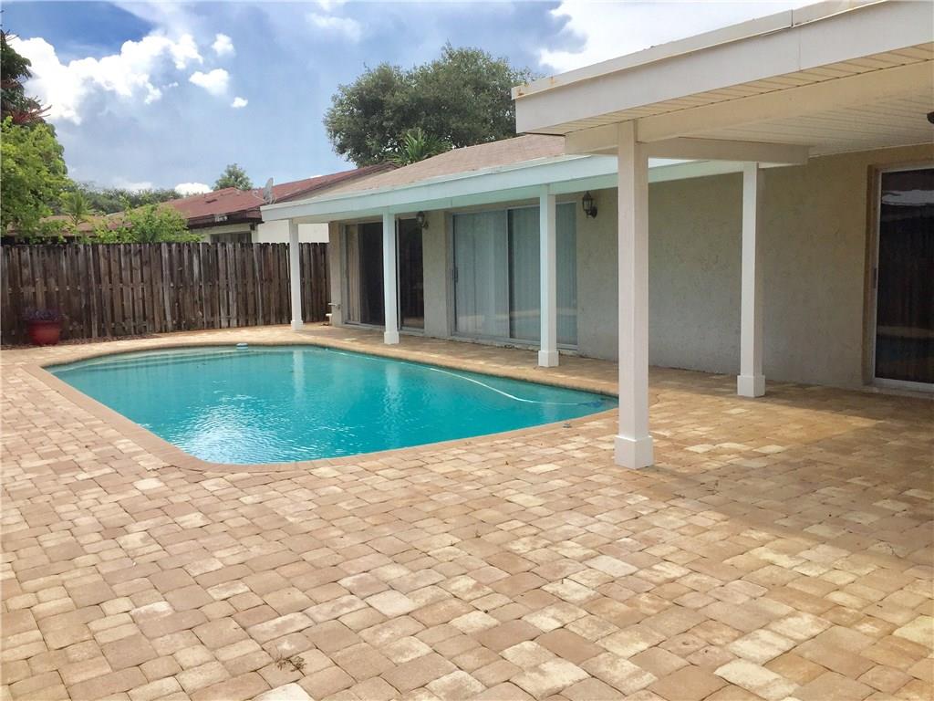 Expanded family home in desirable Welleby . Circular drive w/ brick pavers.True 4 bedrooms,2 bathrooms,2 car garage and fenced yard w/ pool surrounded by beautiful brick pavers.Tiled through out.Open and airy kitchen features wood cabinets,stainless steel appliances and granite counter tops.Master bedroom with sliding glass doors leading to the pool,master bathroom w/ double sinks, and huge walk-in closet with custom built-ins. Roof replaced 2008,Kitchen new 2009. No trucks,RV's,Boats,commercial vehicles