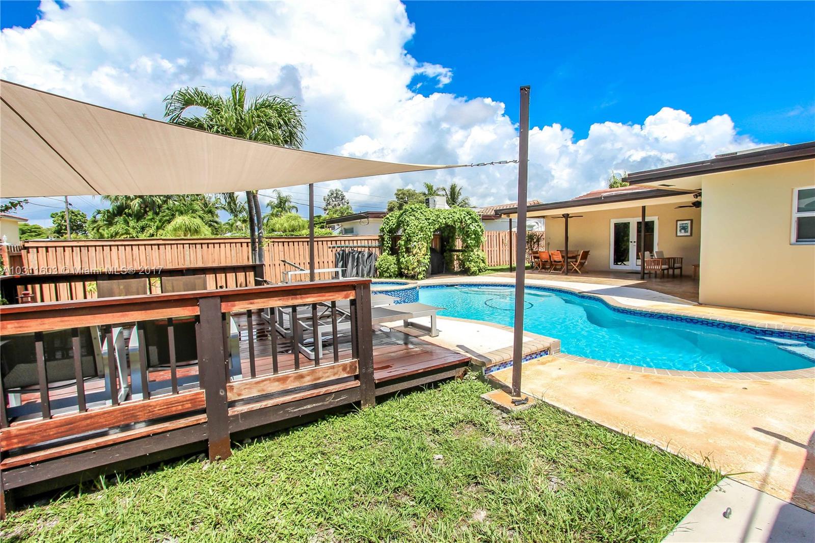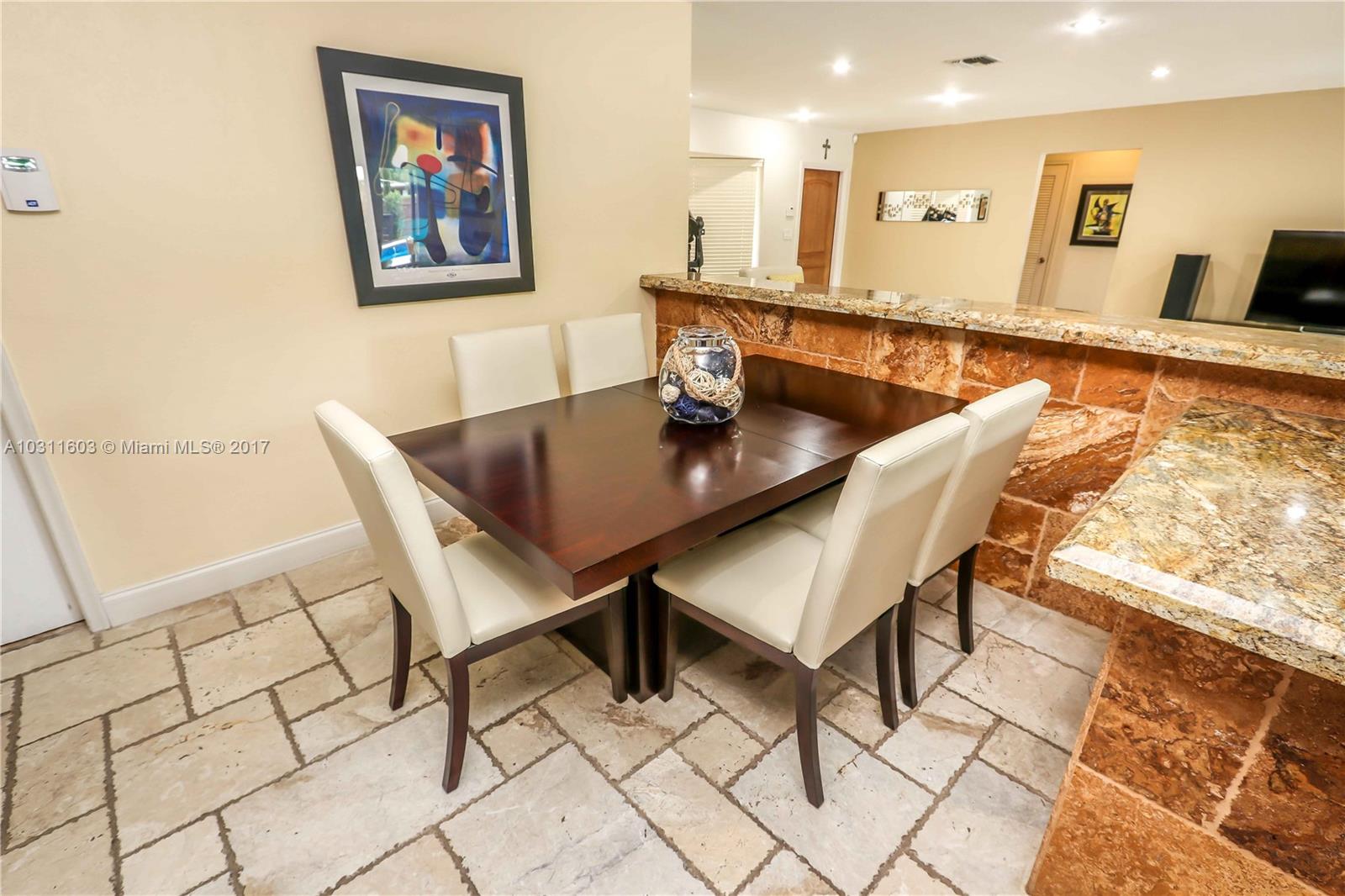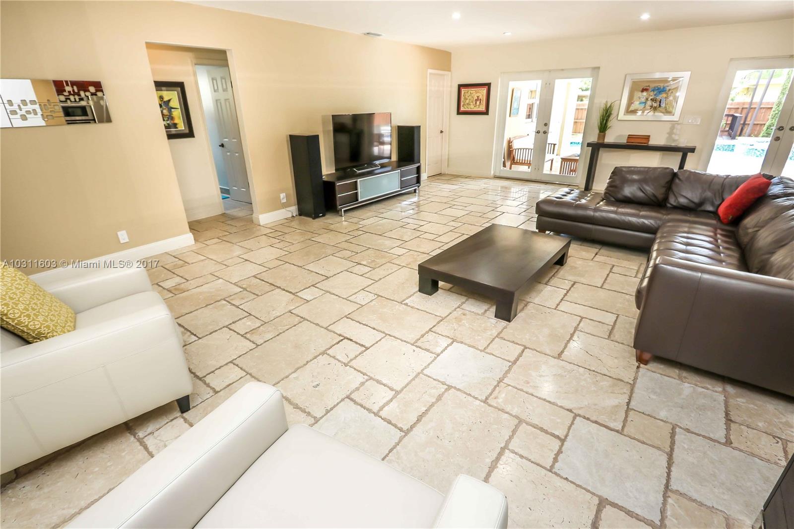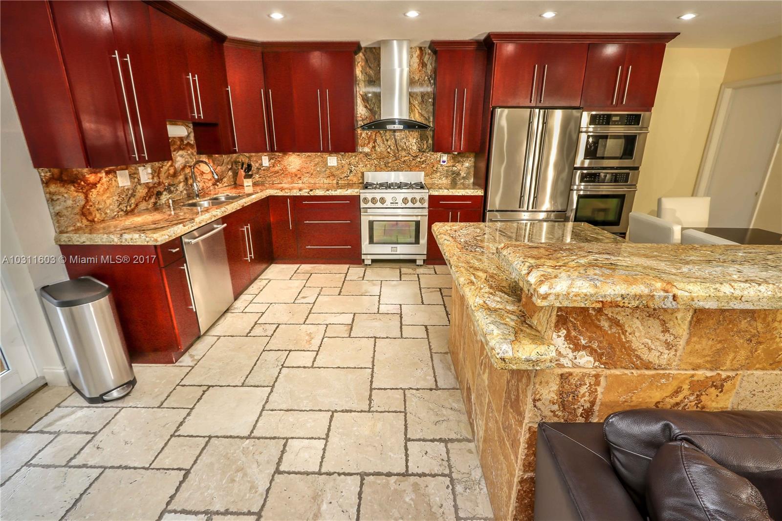 Great for entertaining. Amazing 3BR/2BA,1 car garage home w/ open floor plan.Oversized state of the art eat in kitchen features stainless steel appliances, double door refrigerator, exotic granite countertops w/ a granite black splash, cherry wood cabinets, and professional grade gas stove. Kitchen opens into family room/living room with open bar for extra seating. Chisel marble tumble floors.Impact windows. Master bedroom has spacious walk in closet plus linen closet with bathroom featuring glass door shower and access to pool area. Updated bathrooms. 2nd bathroom features river rock flooring w/ glass shower doors. Laundry room.Fenced backyard, covered patio w/ wood deck for grilling and entertaining. Resort style deep water pool w/ Jacuzzi.Space for a boat.Circular driveway with pavers.