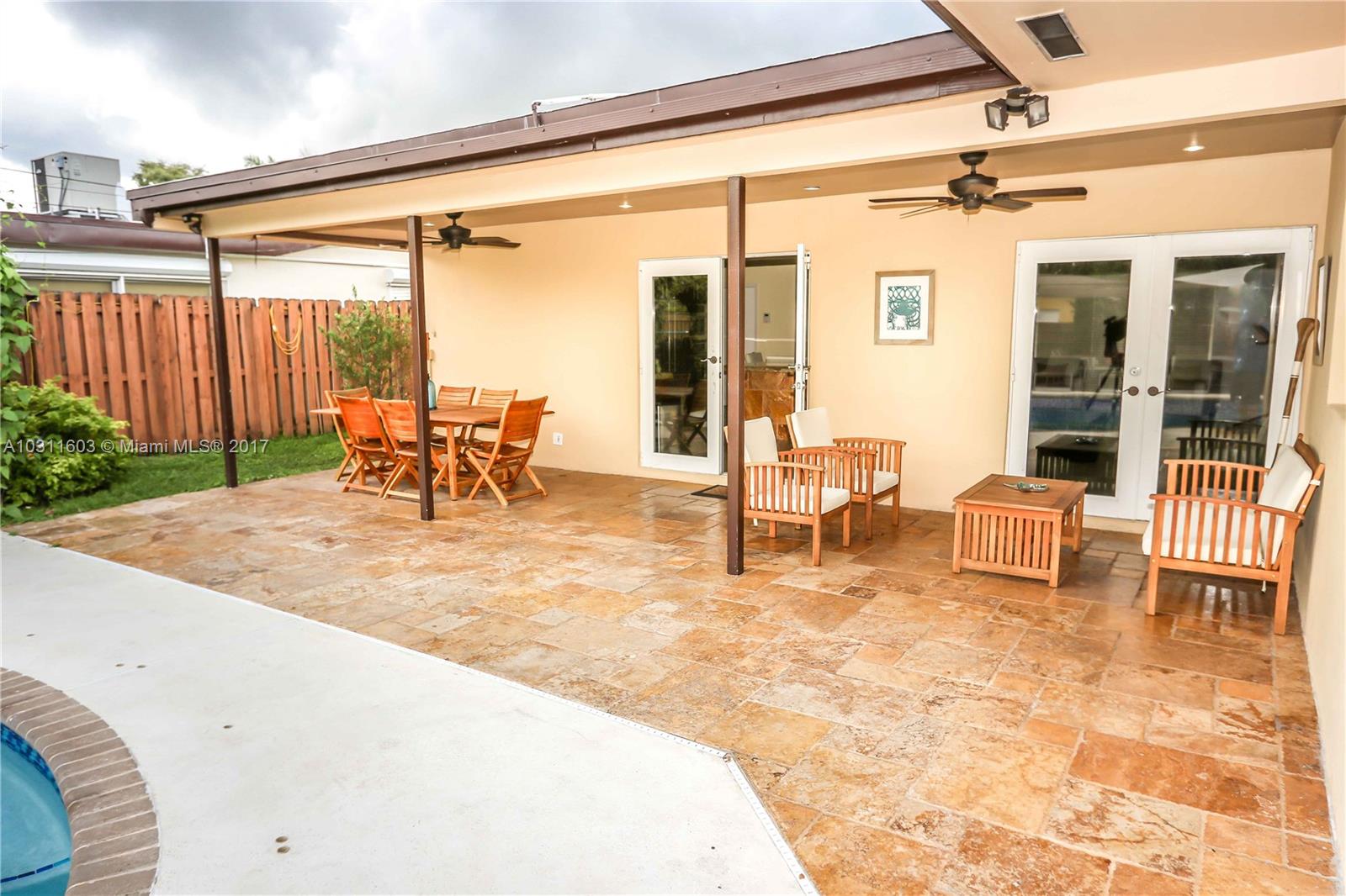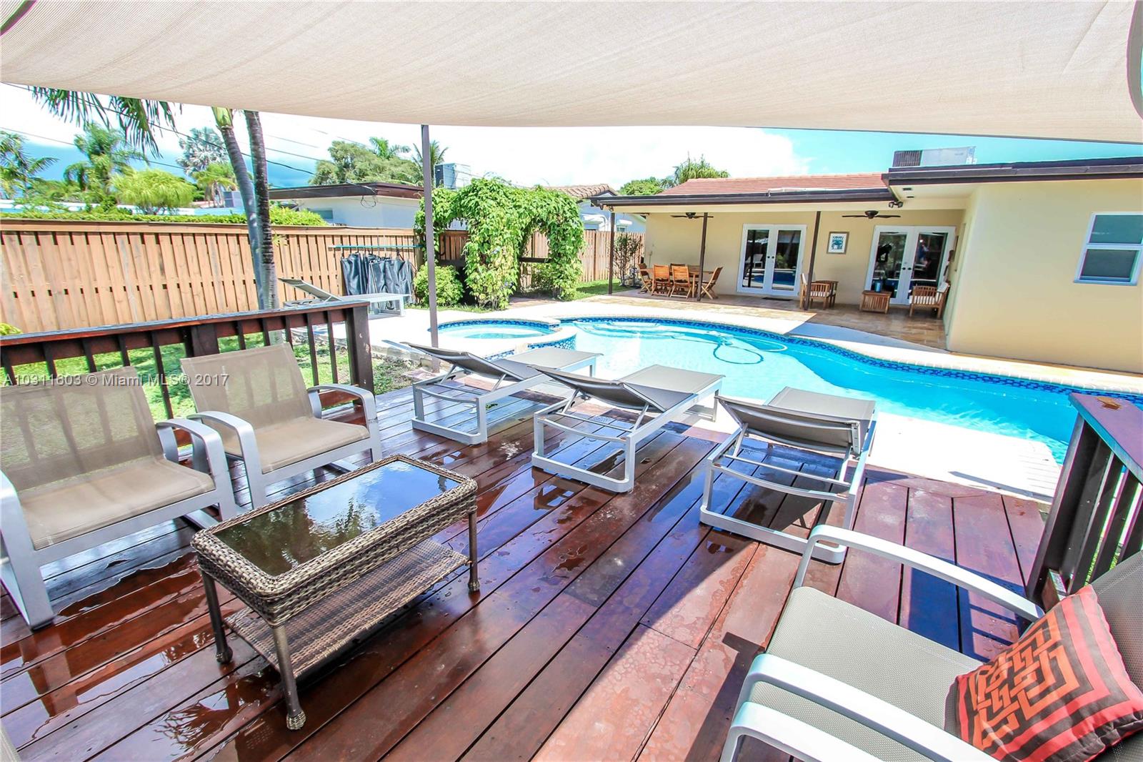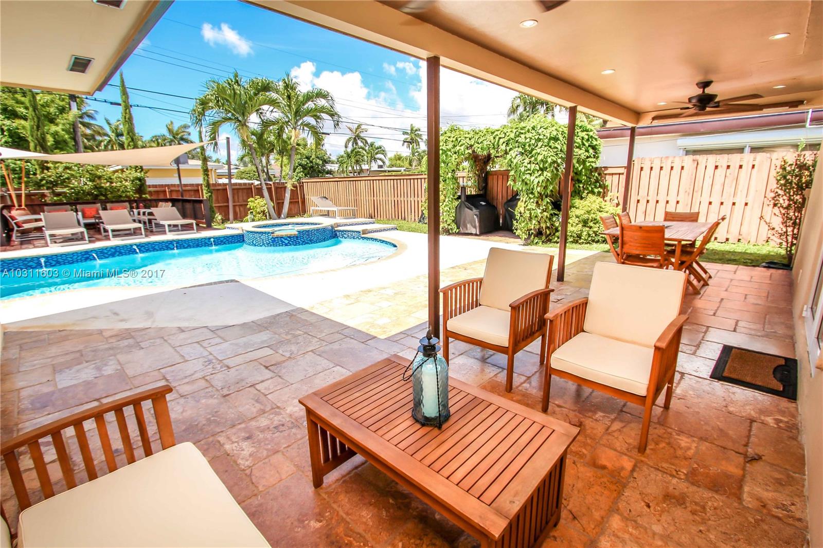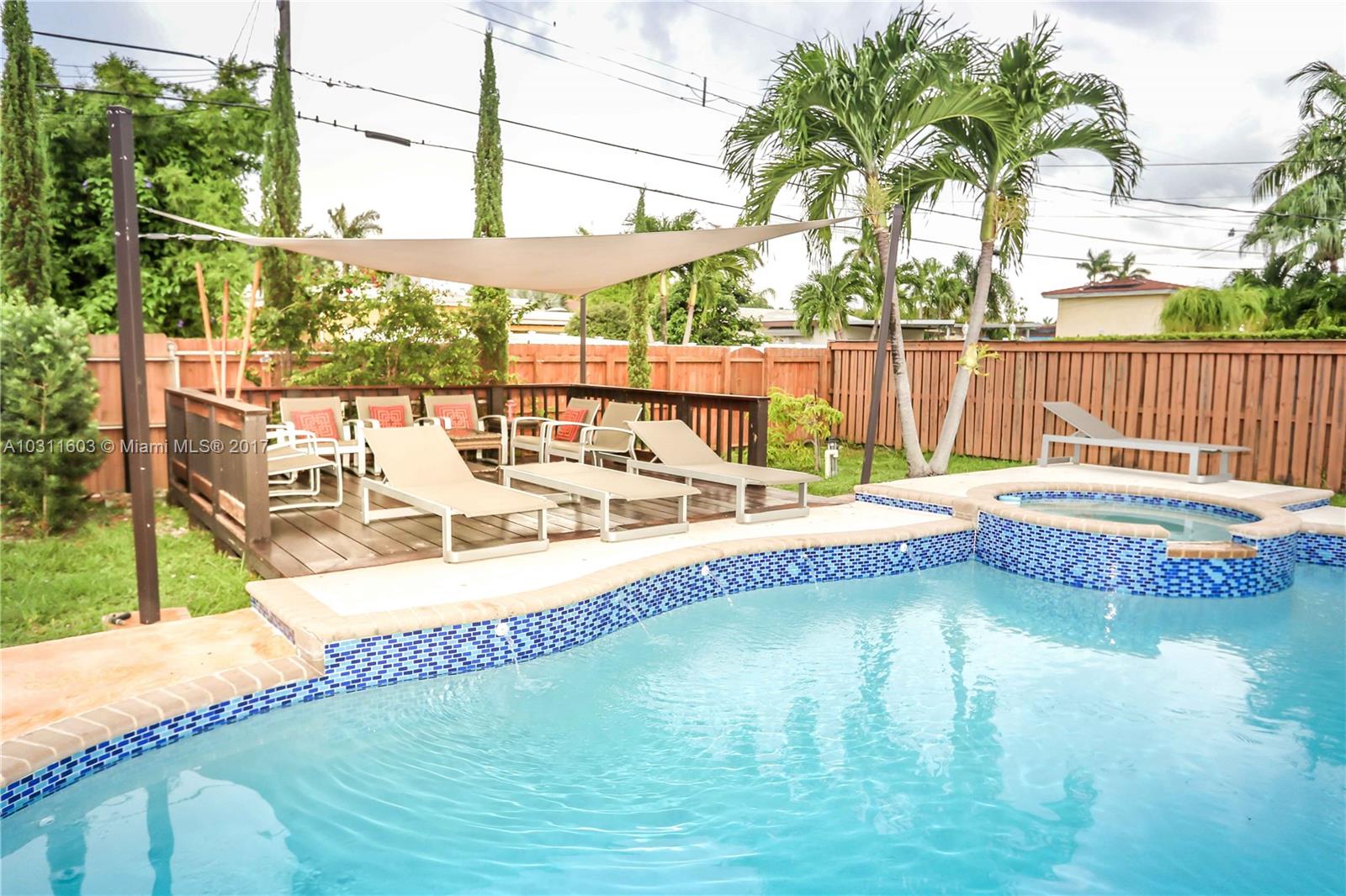 Great for entertaining. Amazing 3BR/2BA,1 car garage home w/ open floor plan.Oversized state of the art eat in kitchen features stainless steel appliances, double door refrigerator, exotic granite countertops w/ a granite black splash, cherry wood cabinets, and professional grade gas stove. Kitchen opens into family room/living room with open bar for extra seating. Chisel marble tumble floors.Impact windows. Master bedroom has spacious walk in closet plus linen closet with bathroom featuring glass door shower and access to pool area. Updated bathrooms. 2nd bathroom features river rock flooring w/ glass shower doors. Laundry room.Fenced backyard, covered patio w/ wood deck for grilling and entertaining. Resort style deep water pool w/ Jacuzzi.Space for a boat.Circular driveway with pavers.