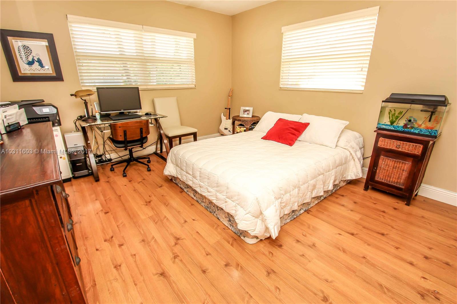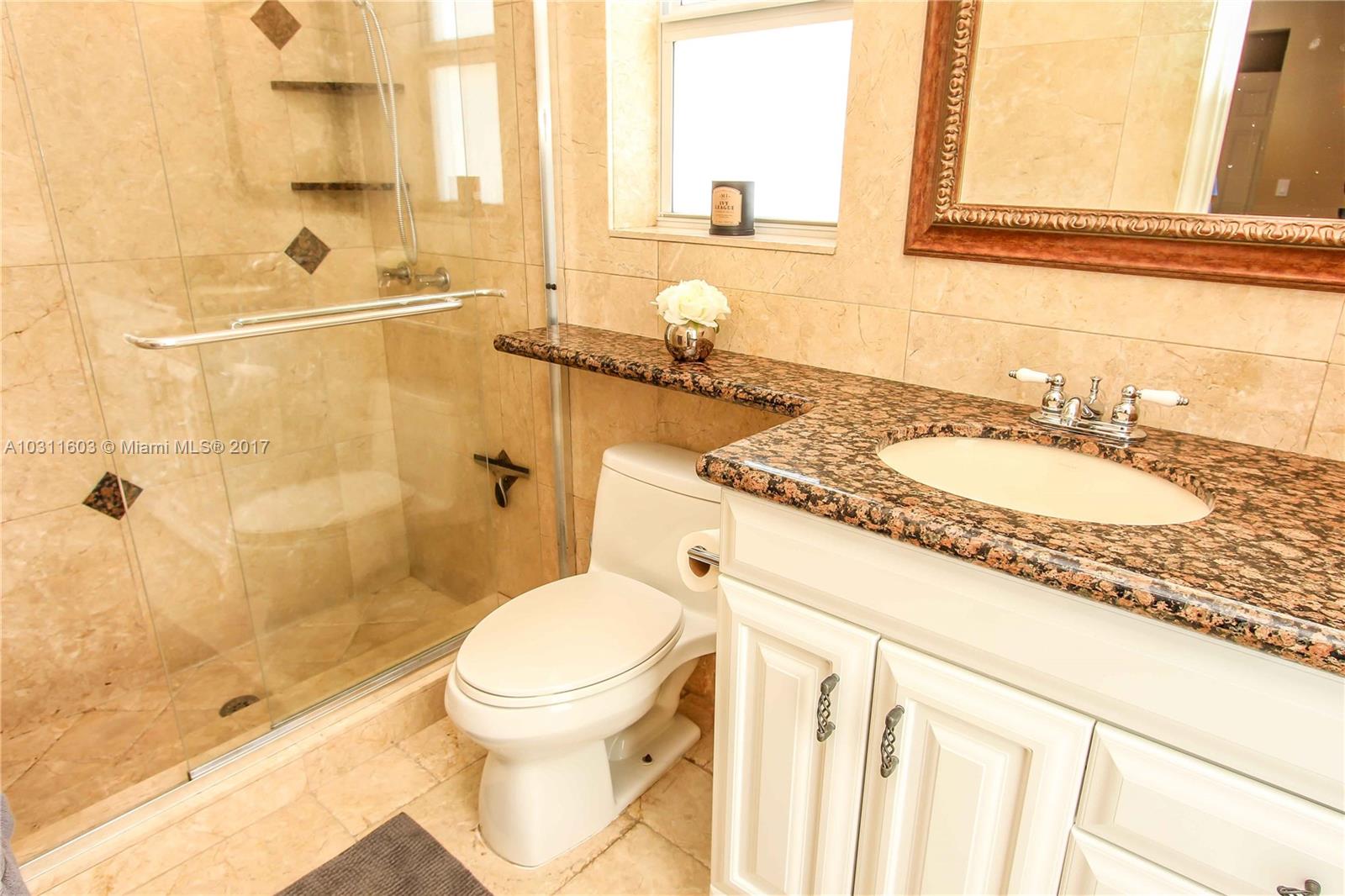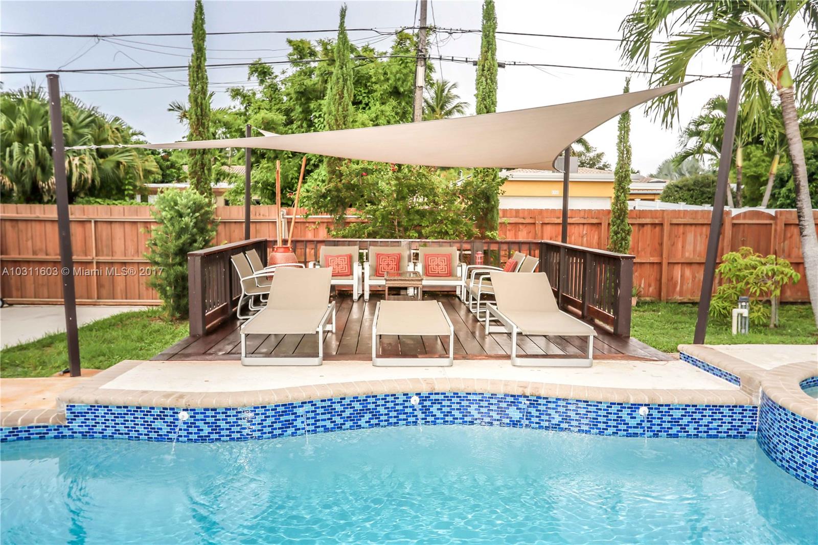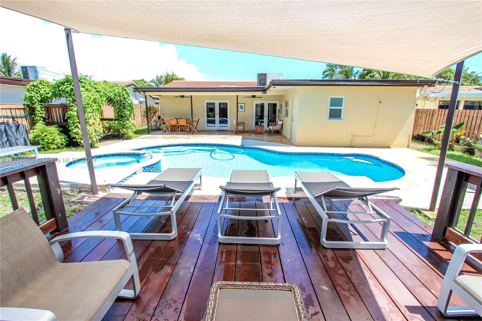 Great for entertaining. Amazing 3BR/2BA,1 car garage home w/ open floor plan.Oversized state of the art eat in kitchen features stainless steel appliances, double door refrigerator, exotic granite countertops w/ a granite black splash, cherry wood cabinets, and professional grade gas stove. Kitchen opens into family room/living room with open bar for extra seating. Chisel marble tumble floors.Impact windows. Master bedroom has spacious walk in closet plus linen closet with bathroom featuring glass door shower and access to pool area. Updated bathrooms. 2nd bathroom features river rock flooring w/ glass shower doors. Laundry room.Fenced backyard, covered patio w/ wood deck for grilling and entertaining. Resort style deep water pool w/ Jacuzzi.Space for a boat.Circular driveway with pavers.