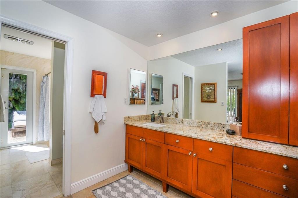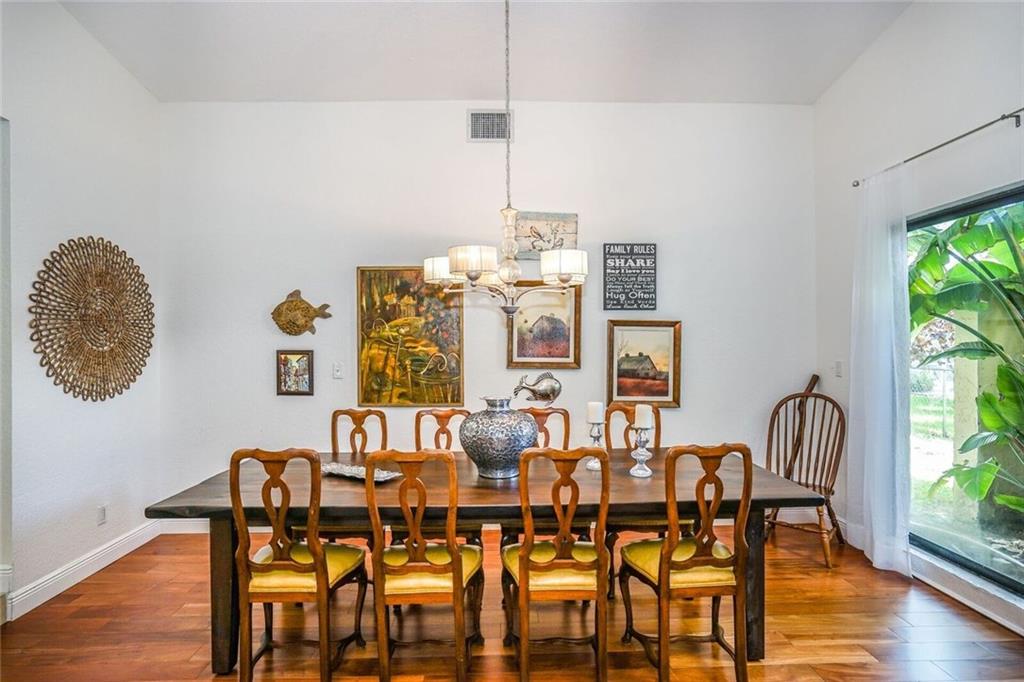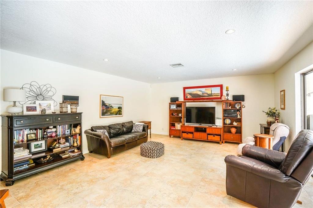 Updated, spacious 4 bedroom/2 bath - pool home. Large foyer entry, formal dining and living with beautiful wood floors and vaulted ceilings, custom kitchen w/tall maple cabinets, pull outs, wine rack, lots of over sized drawers, extra deep pantry, granite counters, stainless appliances, bar seating, breakfast area open to the large family room. sliders all along back side, light, bright and overlooks relaxing, private pool area. Updated bathrooms, impact windows (all but one), new pool finish.