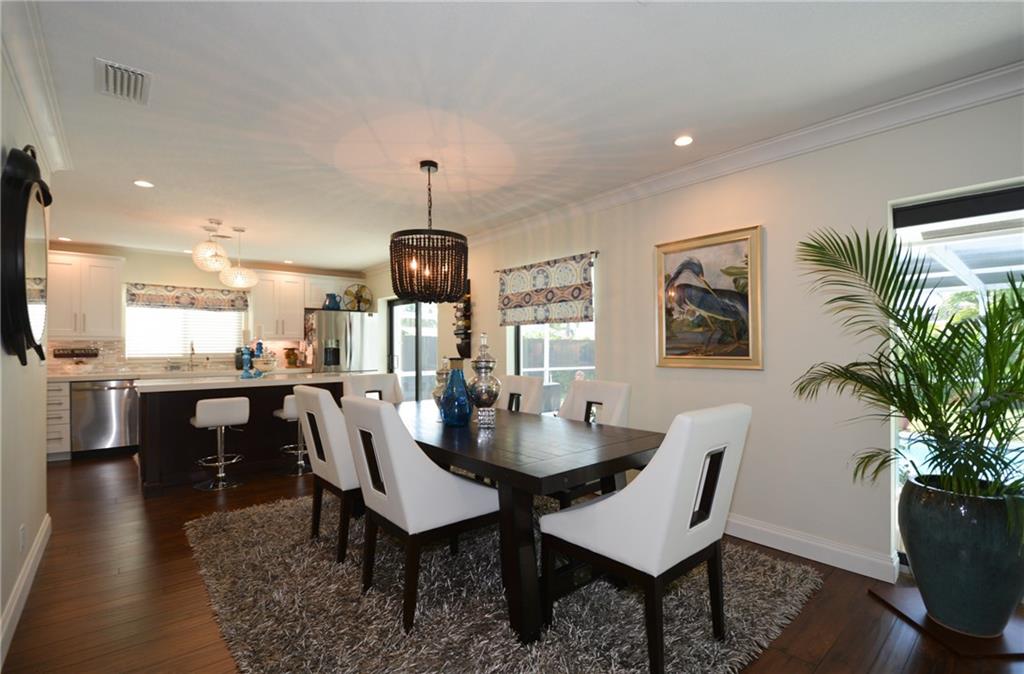 This 4 bed 2 bath completely renovated pool home has it all. Kitchen has been reconfigured & updated with new cabinets, center island, lighting, quartz counters, new SS appliances, pantry and tiled backsplash. Living & dining area boasts an open concept with a bay window & new laminate wood flooring throughout. Both baths renovated top to bottom one has a cabana door to pool. One bedroom has been converted to huge walkin closet for the MB. ALL new Impact/hurricane Windows and Doors. New solar pool heater!