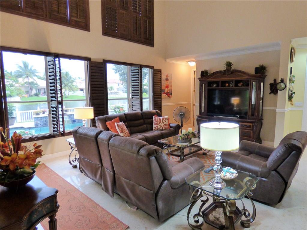 BEAUTIFUL & UPGRADED 5BED/3BATH/3CAR GARAGE HOME. GUARD GATED, NEWER KITCHEN W/ 42"CABINETS, GRANITE COUNTERTOPS & S-STEEL APPLIANCES. MARBLE & LAMINATE FLOORS DOWNSTAIRS,COLONIAL SHUTTERS, UPGRADED BATHROOMS, CROWN MOLDING, FRENCH DOORS, INTERCOM SYSTEM, BUILT-IN CABINETS & CALIFORNIA CLOSETS. MASTER BEDROOM+ 1BED/1BATH ON 1ST FLOOR. AWESOME AND INVITING PATIO AREA, COVERED TERRACE AND BEAUTIFUL POOL. FENCED LOT WITH WATER VIEWS, PALM TREES & EXTENSIVE LANDSCAPING. VERY ATTRACTIVE HOME, DON'T MISS IT!
