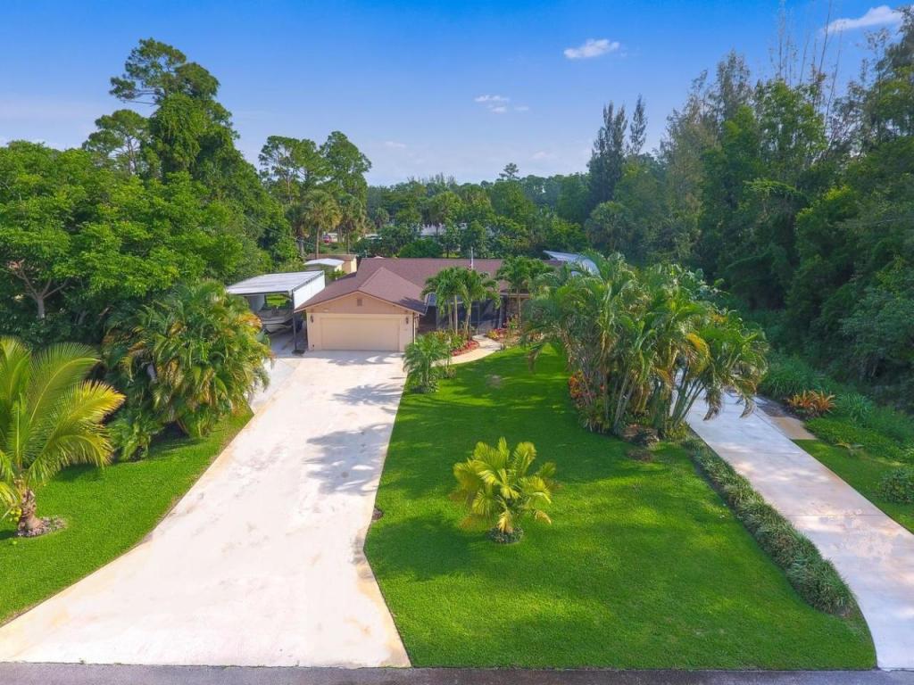 Wonderful renovated & spacious 3+/3 Pool home on 1/2 acre with NO HOA fees! Enjoy a hidden unincorporated pocket within WPB with super easy Turnpike commuting. Fresh paint, newer roof, pool, kitchen with granite, bathrooms, zoned AC, tile & wood flooring! The 3 car/high ceiling garage/50'x 16' WORKSHOP & 3+ motorcycle garage & designated RV/boat carport & 3 sheds & long driveways for 8+ cars, and a Florida room with sauna & hot tub will cover all your needs for SPACE, BUSINESS and RECREATION! IN-LAW apartment with a private entrance and an adj. large bonus room with kitchenette/wet bar can be used as a family room, play area, game room or office space. Fully fenced, private backyard with fruit trees. Welcome to this little piece of paradise!