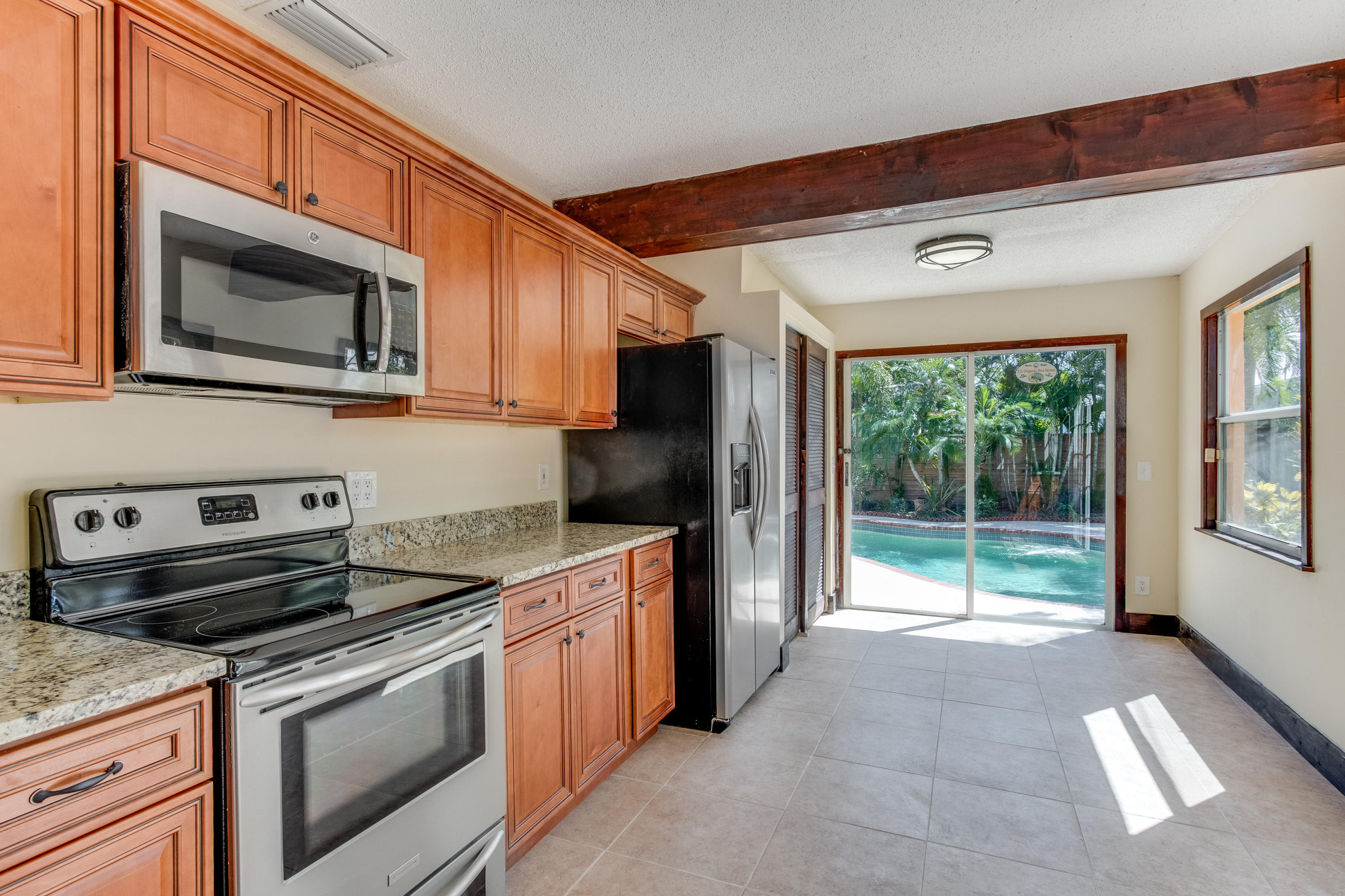 Updated 3 bedrooms, 2 bathroom pool home in historic West Palm Beach. Updates include new kitchen cabinets, granite counter tops, sink/faucet, stainless steel appliances, new bathroom vanity with granite counter top, new laminate wood floors in living areas, new carpet in bedrooms, new light fixtures and hardware through out. Fresh interior paint. Fenced back yard with large pool/patio area.