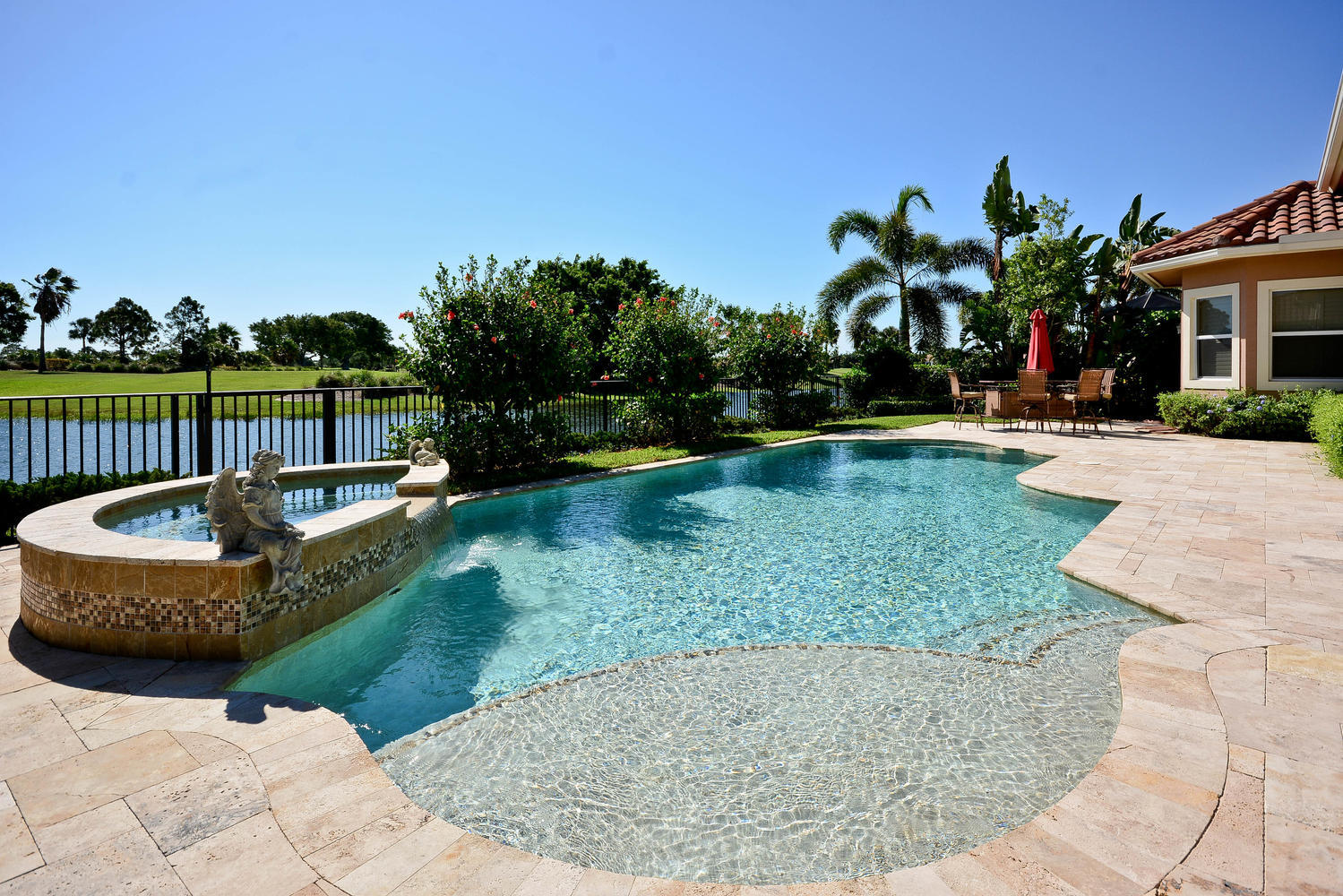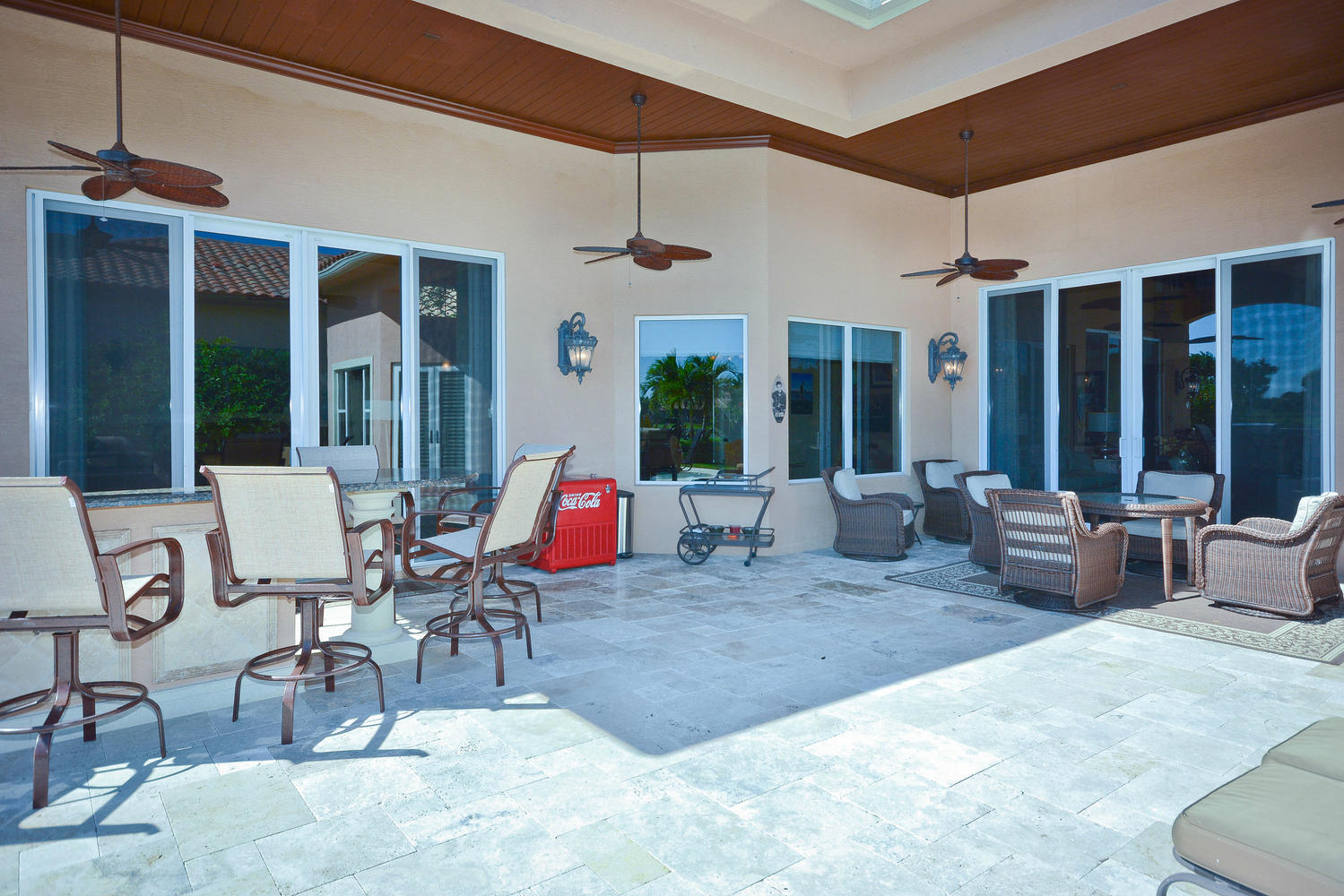 Amazing one-owner home, with custom details throughout, including triple crown molding, tray ceilings. Oversized lot with preserve and water views in every direction. Large,chef's kitchen with GE Monogram appliances, wine cooler, cabinet-panel dishwasher. Outdoor, summer kitchen with stainless grill, refrigerator, granite. Outdoor covered lanai with gas fireplace. Large master bedroom opens to pool area. Luxurious master bath with 2 sinks, Jacuzzi tub and seamless shower with 2 shower heads. 2 car garage with golf cart storage.