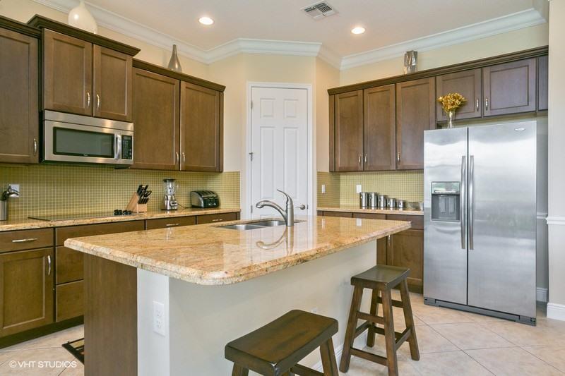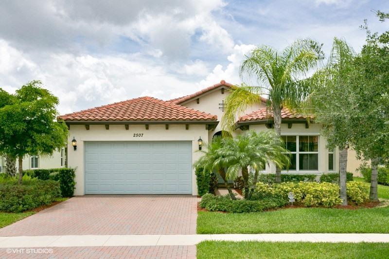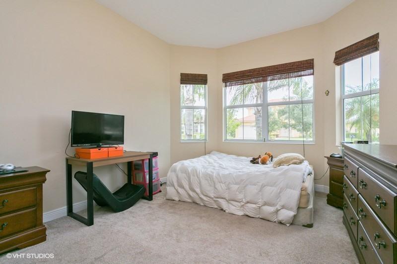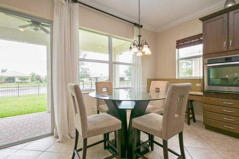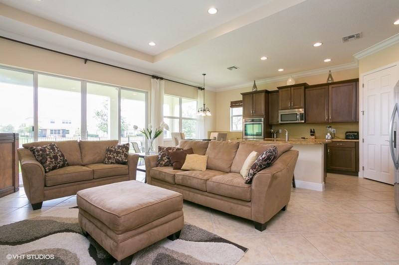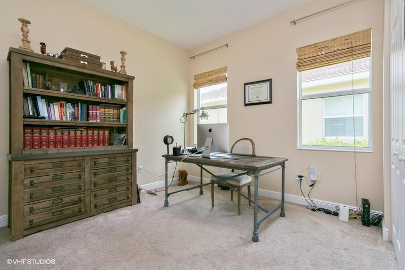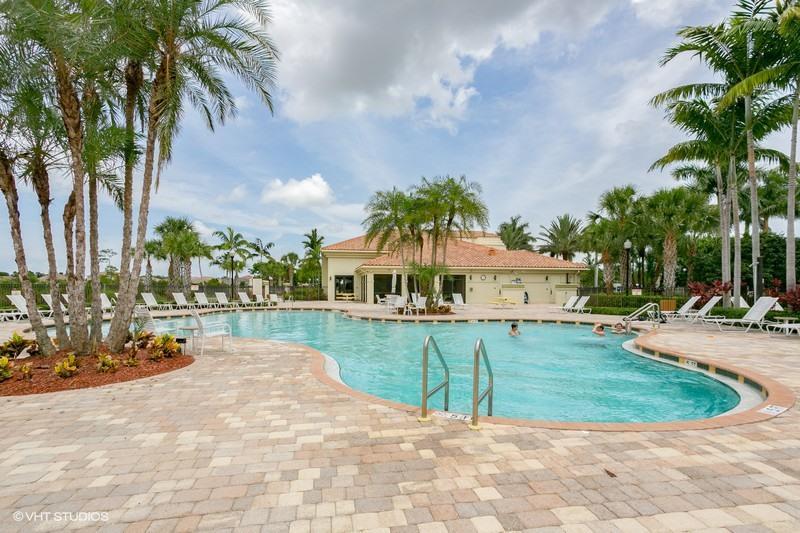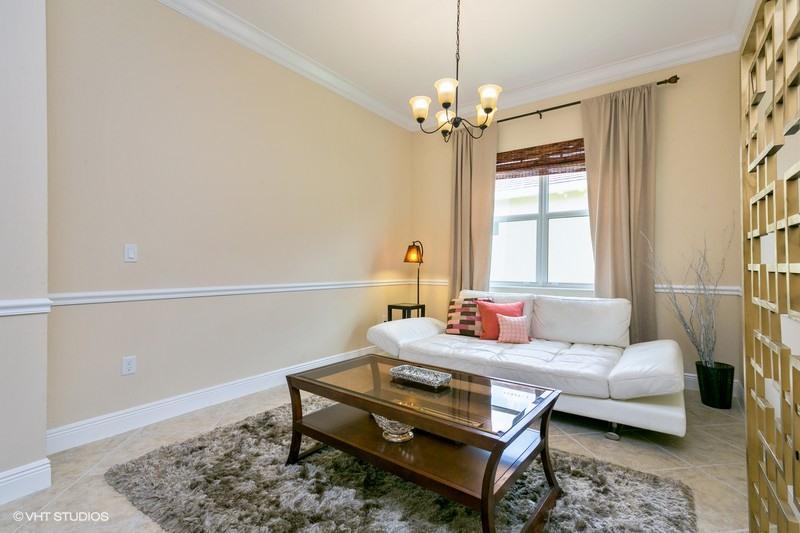 Must see! Meticulously maintained this Portofino floor plan has it all on one floor! 3 bedrooms (with extra large den which could be 4th bedroom) and 2.5 bathrooms, GREAT ROOM with separate formal dining room, all with a gorgeous lake view! Large fenced in yard. Home shows like a model with custom crown and moldings throughout. PORTOSOL has great amenities with low HOA fees, convenient to shopping, restaurants, I-95, Turnpike and airport. Portosol is a gated community offering a wide variety of amenities including clubhouse, resort style heated pool, state of the art fitness center, billiards table, children's play area with interactive water features, lakes and plenty of green space.