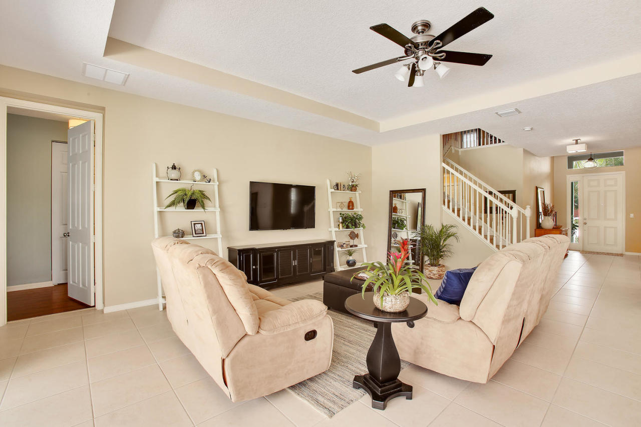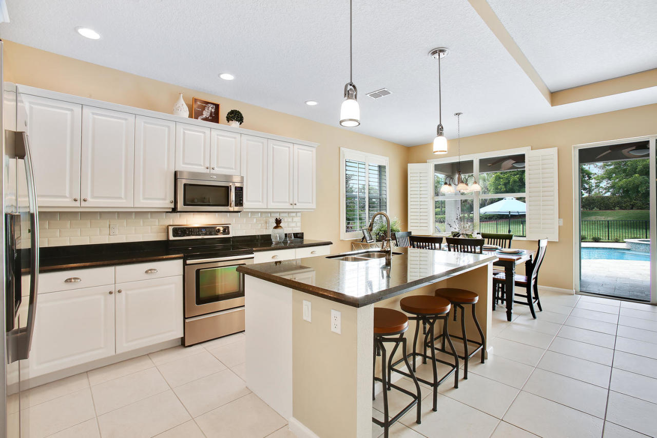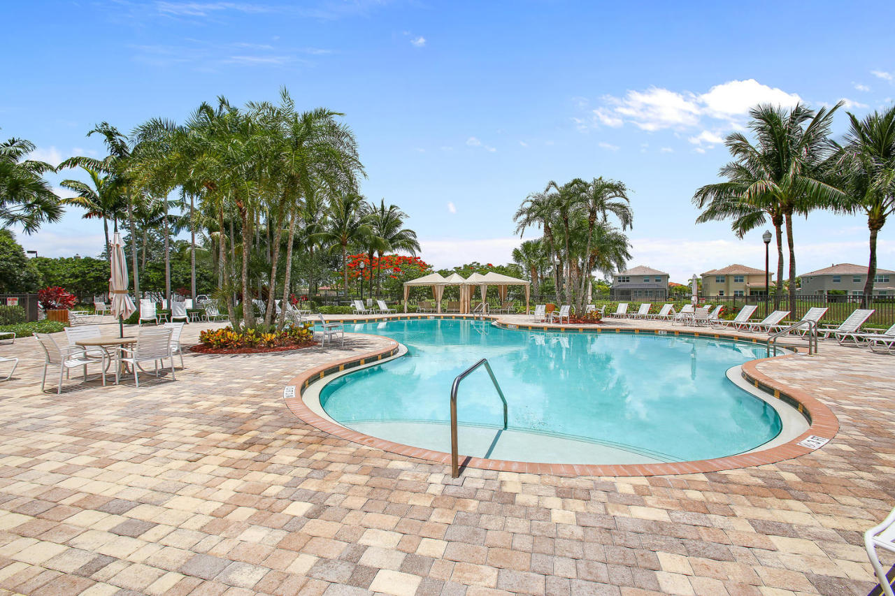 Rarely offered, almost 1/3 acre with custom resort style pool, spa and patio with covered lanai at the end of a cul-de-sac. Model perfect 4 bed/3 bath home with spacious master suite down, guest room down and 2 bedrooms and loft up make this an ideal family floor plan. Situated in the sought after community of Portosol. Amenities galore with low HOA fees make this a great community! Amenities include clubhouse, community resort style heated pool, children's play area with interactive water features, basket ball, tennis and fitness trail, plus state of the art fitness center! All this and more in a gated neighborhood minutes to shopping, restaurants, airport, I-95 and Florida's Turnpike.