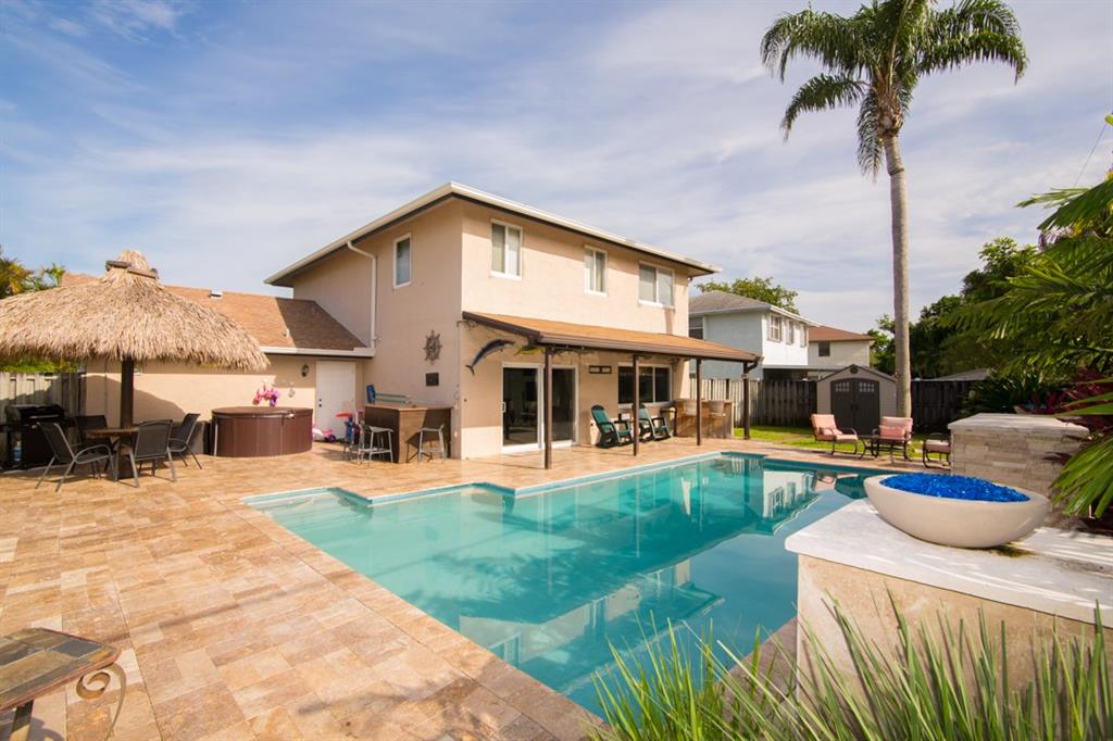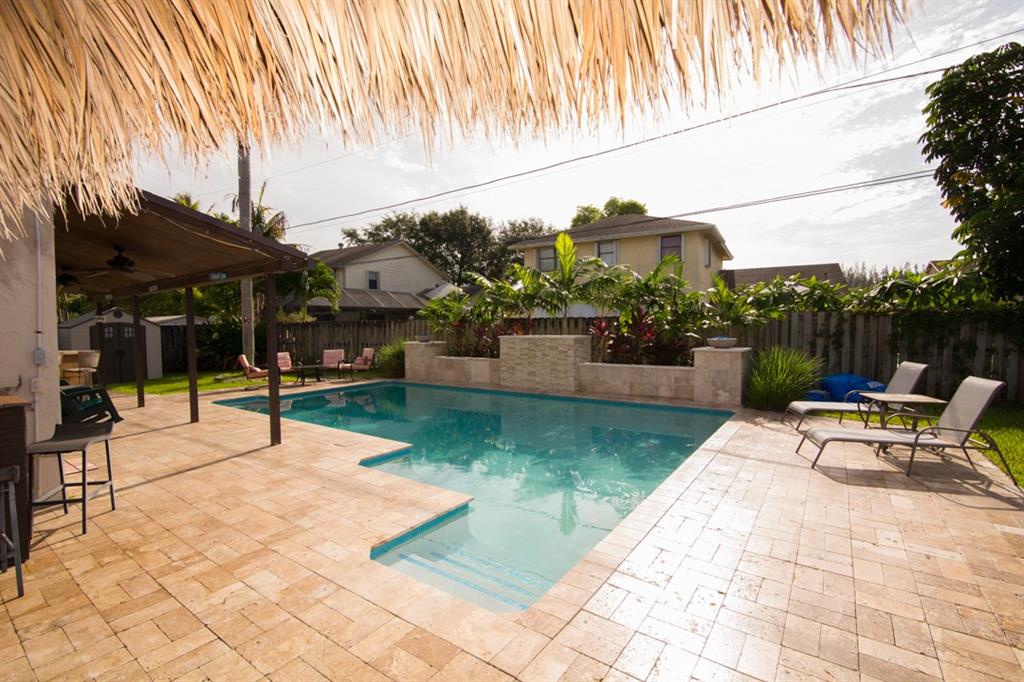 BEAUTIFUL 2-STORY FAMILY HOME IN SUNRISE GOLF VILLAGE. THIS 3 BEDROOM 2.5 BATH WITH LARGE DEN/PLAYEROOM HAS BEEN TASTEFULLY UPDATED. KITCHEN HAS SS APPLIANCES, GRANITE COUNTERS AND GAS RANGE. LIVING AREAS HAVE NEW WOOD LOOK CERAMIC TILE. BACKYARD OASIS WITH SALTWATER POOL W/ NEW DIAMOND BRITE, CUSTOM STONE RETAINING WALL AND ALL NEW TRAVERTINE PAVERS. UPDATED MASTER BATH, IMPACT WINDOWS/DOORS, NEW BASEBOARDS, CROWN MOLDING, NEW SEAMLESS GUTTERS & NEWER A/C. WALKING DISTANCE TO SUNRISE ATHLETIC COMPLEX.