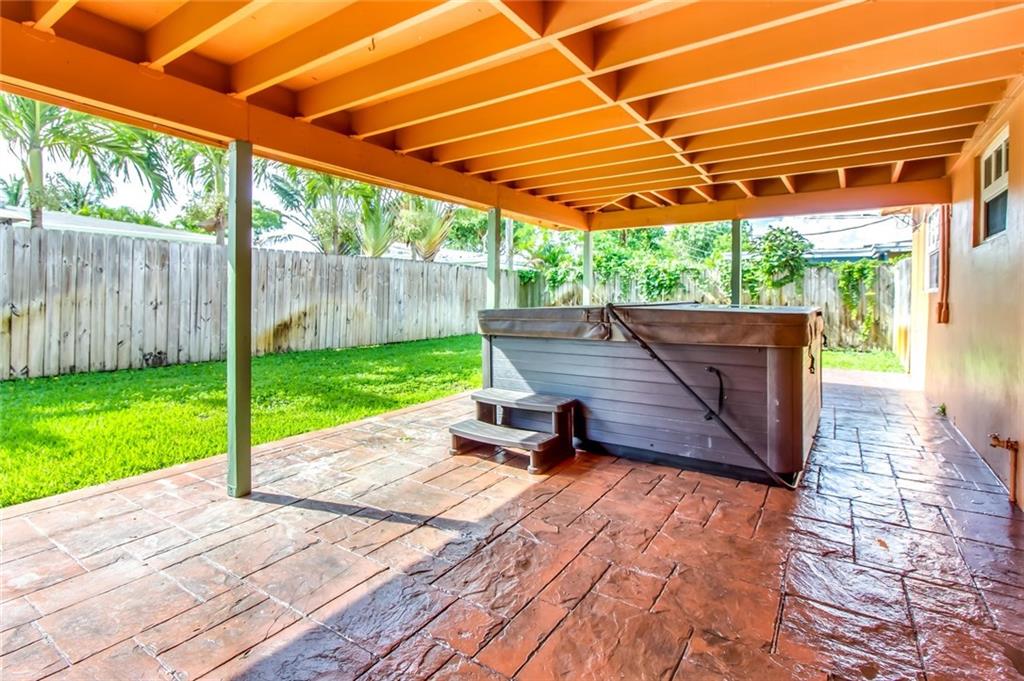 Completely updated 3 bedroom 2 bathroom home in Lyons Park. Granite in kitchen and bathrooms, stainless steel appliances. Barrel tile roof 2004, flat roof 2015. Baseboards and crown molding, hurricane impact windows, sprinkler system, utility room with washer, dryer and storage. Gas dryer, wired for alarm. Air conditioner 2009, tankless water heater. Large backyard great for entertaining with a hot tub. Stamped concrete driveway with a carport.