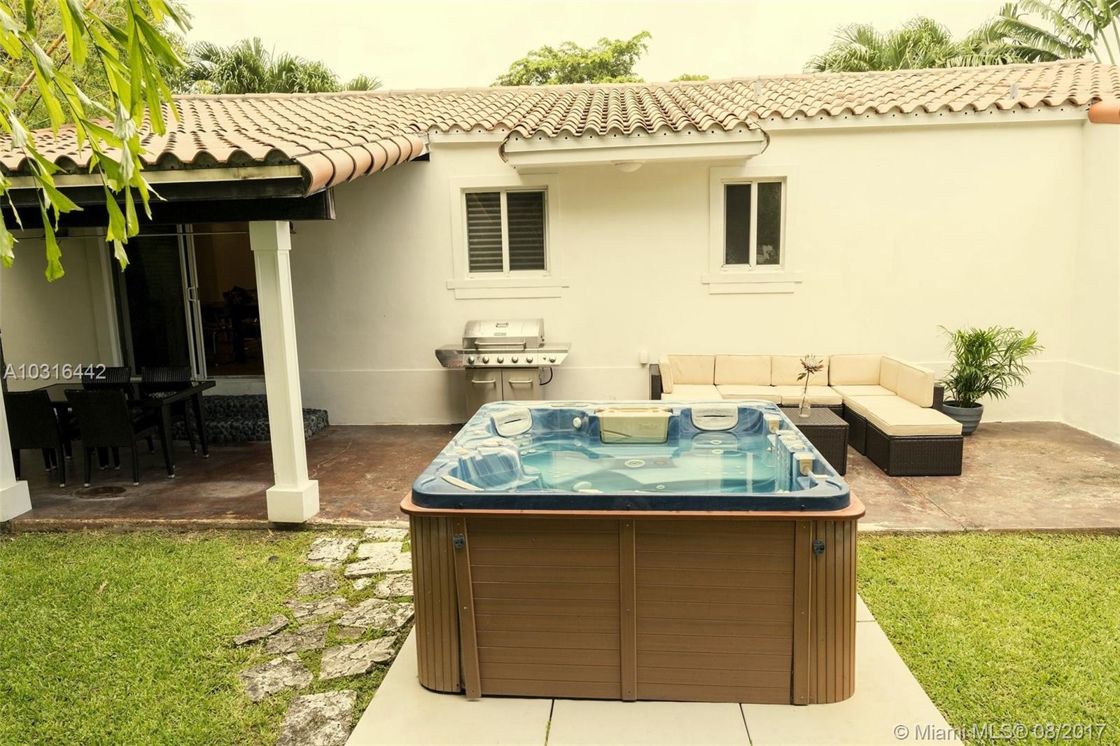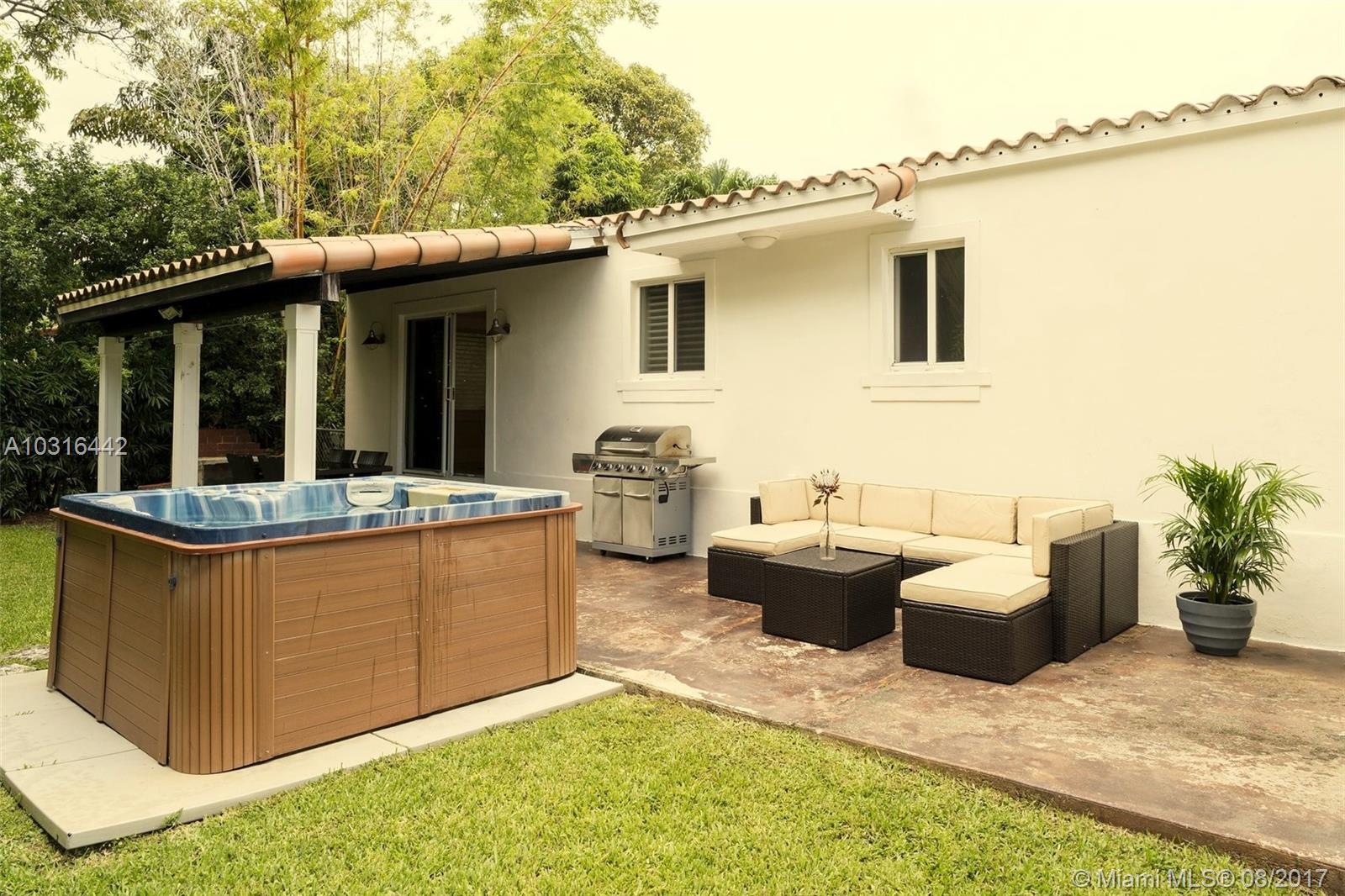 This home has it all! Gorgeous, completely remodeled 2 BR/2 BA in the North Gables. This house is pristine and no expense was spared in the renovation! Travertine floors, coffered ceilings, top of the line alarm system, impact windows/doors, stunning kitchen & bathrooms, laundry room, and even a hot tub! A stunning open kitchen with stainless steel appliances and wood cabinets is at the center of the home. The gracious master suite has a huge walk-in closet and exquisite bathroom. Nice backyard and patio area plus a big front yard, all on a quiet street with plenty of parking. Do not miss this opportunity - a beautiful home in The City Beautiful!