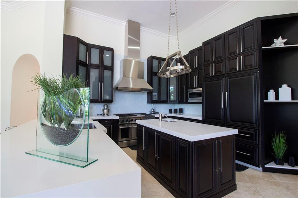 Luxury with fine details, must see Hawks Landing beauty. This is a 5 bedroom with office/theater room. Crown molding throughout. Contemporary finishes in the updated gourmet kitchen with stainless appliances,6 burner gas stove with griddle, island w/ veggie sink, wine rack and chiller. Wet Bar. Entertainment room. High end lighting throughout. Triple split floor plan, oversized point lot on water with lush landscaping. Summer kitchen and pool/spa. Impact windows. Clubhouse. Live life here.