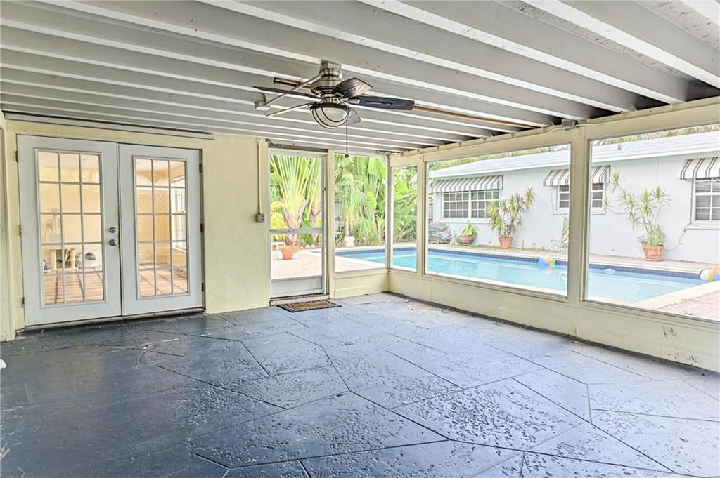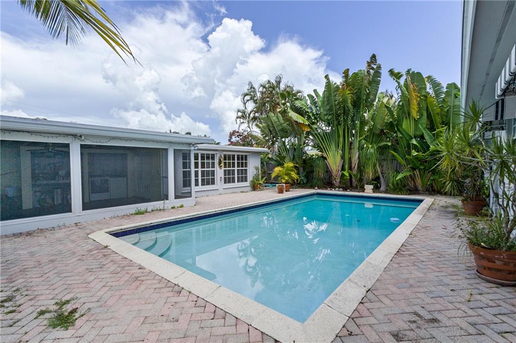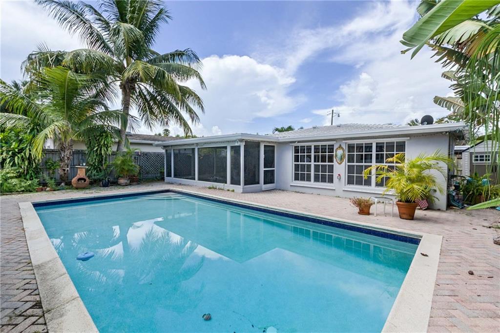 House with super nice cottage, separated by the pool. Lots of possibilities here --- front house is 3 beds/ 1 bath, den, large screened porch, then out to the pool. A/C new in 2016. Back Cottage (not attached) is a nicely renovated 1 bed/ 1.5 bath bright unit. Both homes have central A/C and their own washers and dryers. One water meter, 2 electrical meters. Sweet street in Poinsettia Heights, easy to access Federal Highway or over to Wilton Manors. Live in one and rent out the other --- easy living.