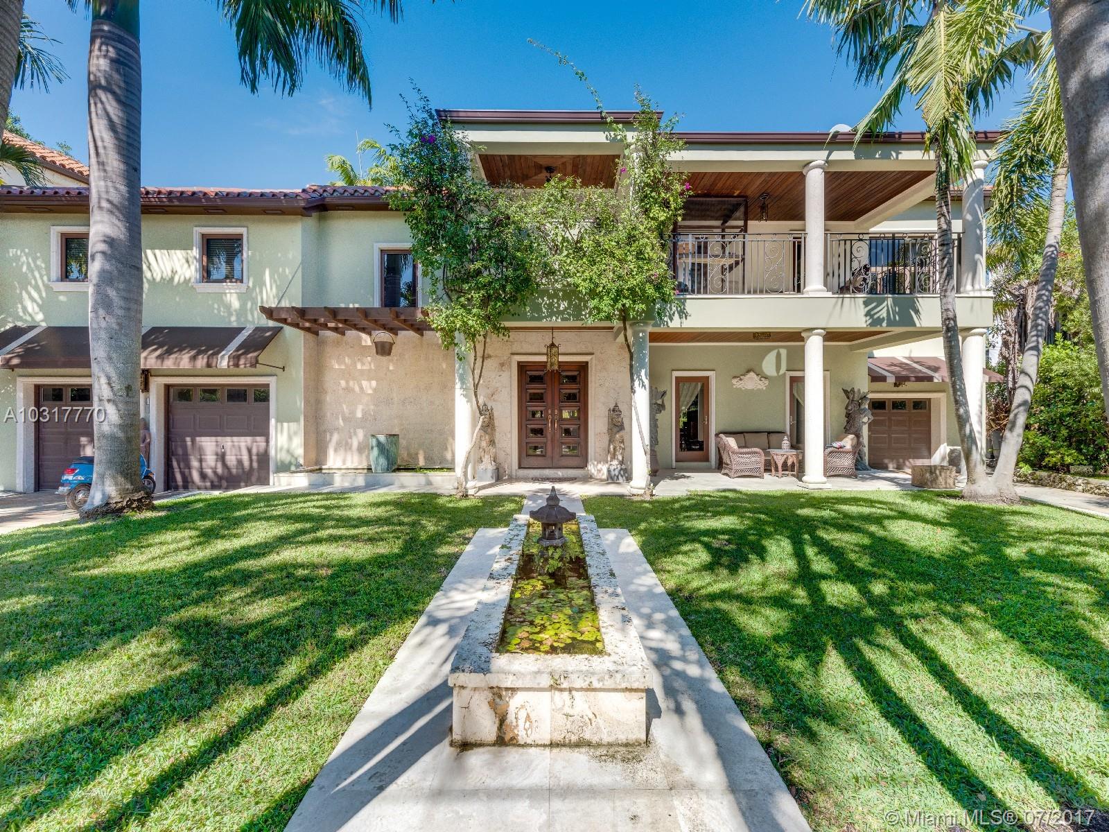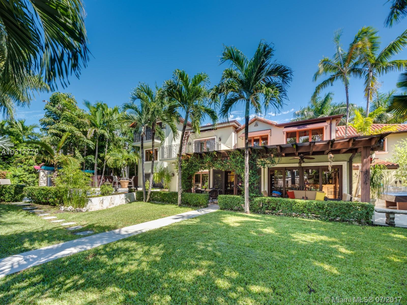 Perfectly located Classic Architectural Masterpiece on a lush tropical & serene setting. Near Lincoln Rd & Sunset Harbour shops. 6,204 sf home, 4 bed upstairs each w/its own bathroom. Large master suite w/front & rear terraces. Additional Open loft area w/its own separate room & bathroom. 100ft of waterfrontage.Large dock, covered outdoor terraces, & pool. 3 car garage & private courtyards. Home is very well maintained & tastefully renovated including impact windows & doors. Ready to move in