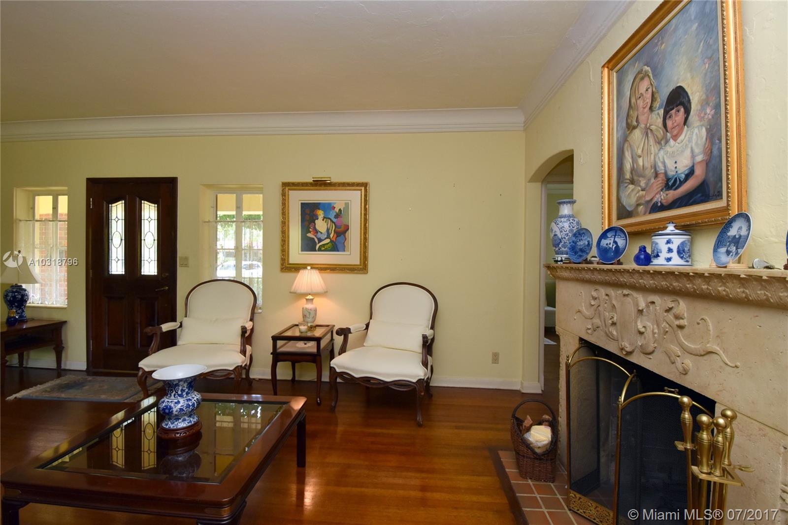 Precious 4 bedroom 3 bath home located in the "Golden Triangle" of Coral Gables. House sits on 12,900sf lot with room to expand and add a large pool. This property offers spacious bedrooms with hard wood floors and high ceilings, cedar lined closets, fireplace, updated kitchen and much more. Just a minute's stroll or bike ride to shops and restaurants on Miracle mile and steps away from the Youth Center and Public Library.