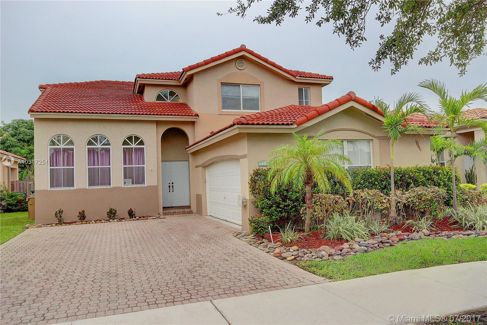 Having trouble finding a large 4/3 SFH with nearly 2200 sq. ft. of LA for under 380k? Well here it is! Beautiful home in one of Davie's most desirable neighborhoods...Royal Palm. One bedroom & bathroom downstairs, vaulted ceilings, formal dining room, large family room, indoor laundry room, spacious bedrooms, large kitchen, and a large yard with room for a pool. Very attractive design with side load garage gives this home a grand curb appeal. Right offer will include a one year AHS home warranty. Very Low HOA fee includes gated security entry and front lawn maintenance. Home is PRICED TO SELL. Well maintained and in great move-in conditions. Agents...PLEASE READ BROKER REMARKS for showing instructions and offer requirements. See MLS attachments. Thank you