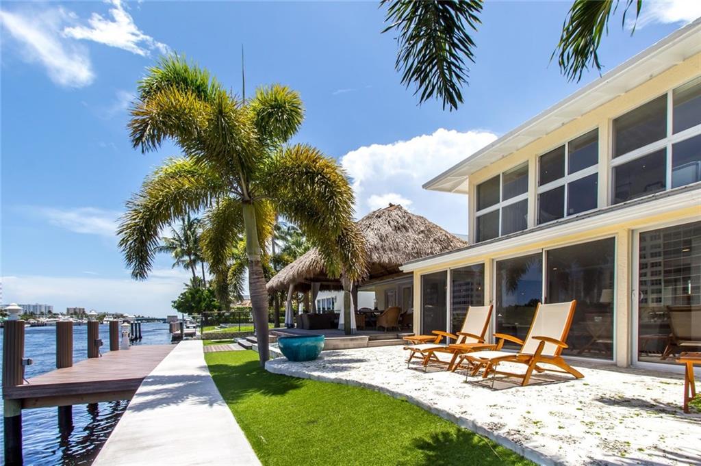Exquisite Intracoastal custom built pool home with all the bells and whistles. You can't beat this harbor village location, which is walking distance to beach, shopping and restaurants. The main house has 4 beds, 2.5 baths with a private detached 1 bed/1 bath Guest/In-Law suite! Custom finishes include crema marfil floors ,limestone counter tops, S.S. appliances, remodeled bathrooms and a new dock! With 80' on the water, you can sit out back in your private Tiki Lounge and enjoy the panoramic views!
