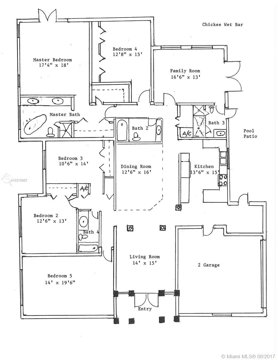 Gated 24 hr guarded entry. Community marina/boat ramp. No HOA. Executive home expanded & remodeled. Split bedroom plan. Cherry wood floors, marble master bath w/pedestal tub, dual vanity. All impact windows, French doors. Spacious eat-in kitchen, formal dining. Open floor plan. Chickee hut w/fully equipped bar to entertain around pool/patio. Garage flooring/storage. Spacious kitchen, custom polished cement counters.