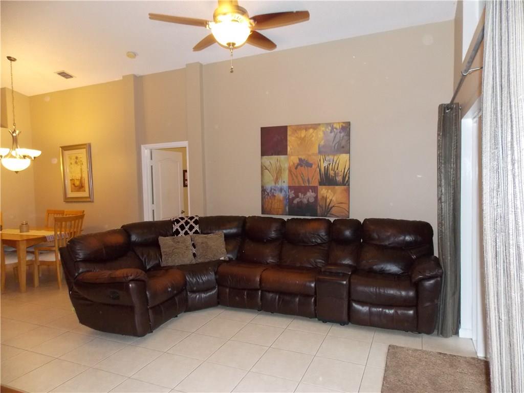 Nicely landscaped, Ready To Move-In home located in gated community of ENCANTADA. BONUS ROOM w/closet can be used as a 4th bedroom, office/library/play or exercise room. Vaulted ceiling, open kitchen w/Stainless Steel appliances, tile roof, Double French doors leading to the screened patio great for entertaining, newer AC, lots of natural lighting, tiled & laminate wood flooring, auto sprinkler, large master bed & bath. Private Community features security guard, playground, tennis courts, huge pool & gym.
