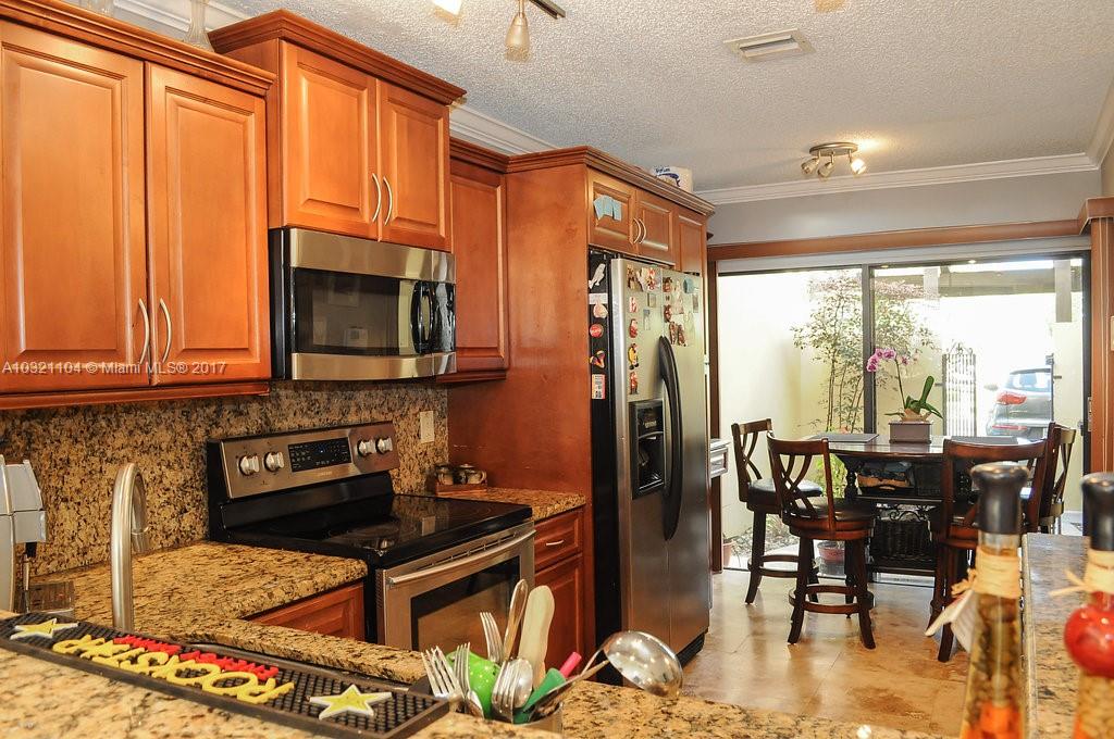 Terrifc 3/2.5 Townhouse in the heart of Doral. Enjoy Costa del Sol's great amenities, including golf course, Tenis courts, Pool, lovely green areas and more. Remodeled open kitchen w. large granite counter/bras for easy entertaining, also breakfast nook, travertine floor on 1st story and wood floors 2nd story. Spacious bedrooms w/remodeled baths. Hurricane shutters. Garage converted to Florida Room. Screened patio. Maintenance includes: Insurance, roof, waterr, basic cable, 4 tennis courts, pool & more.