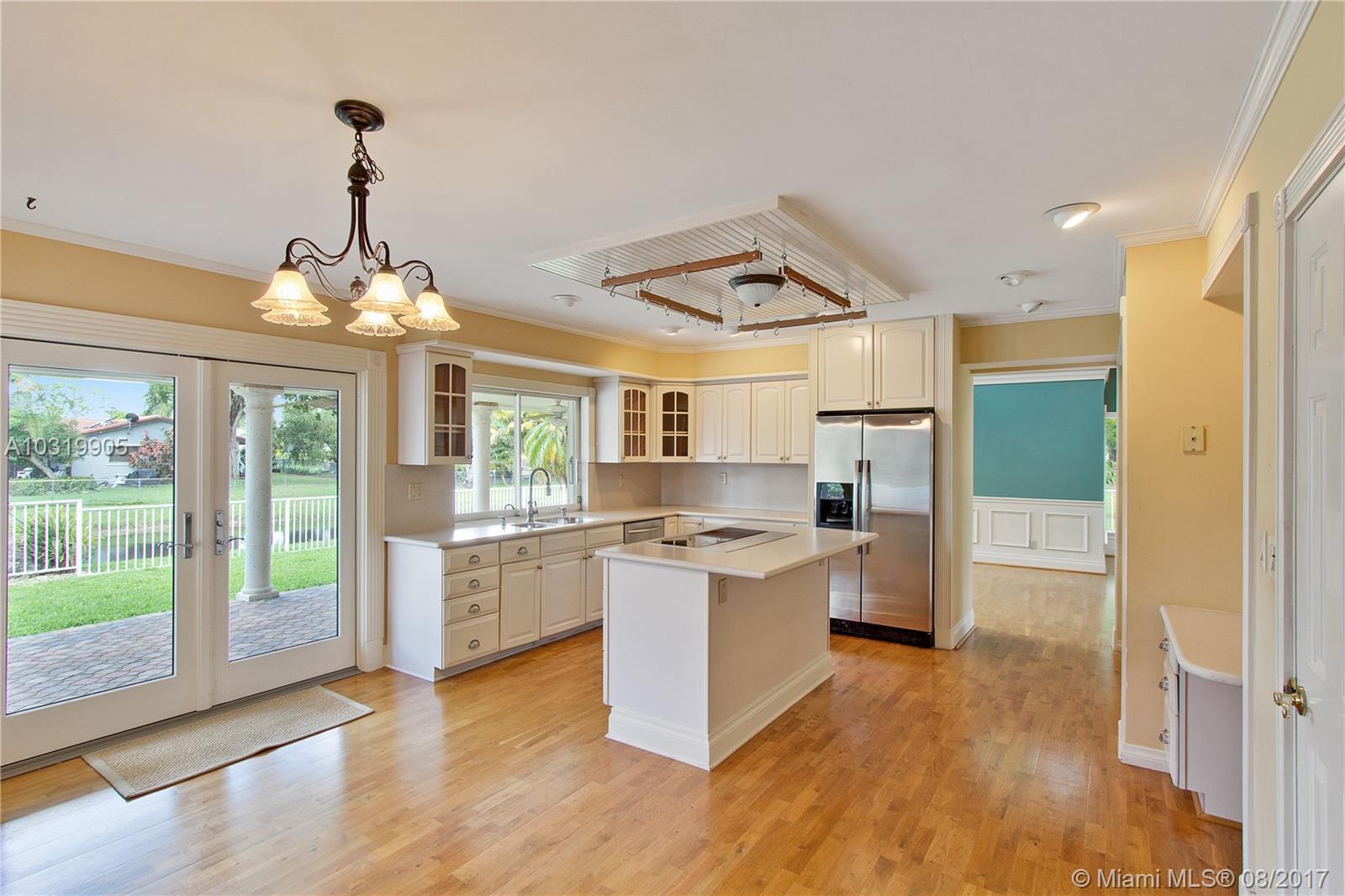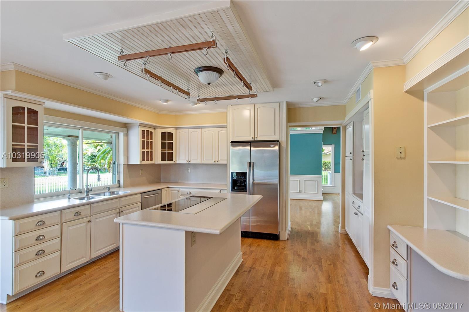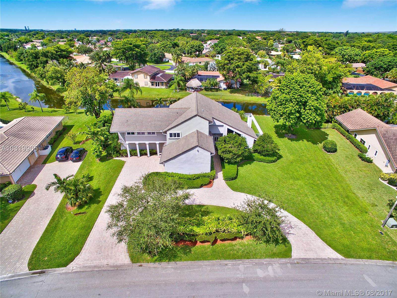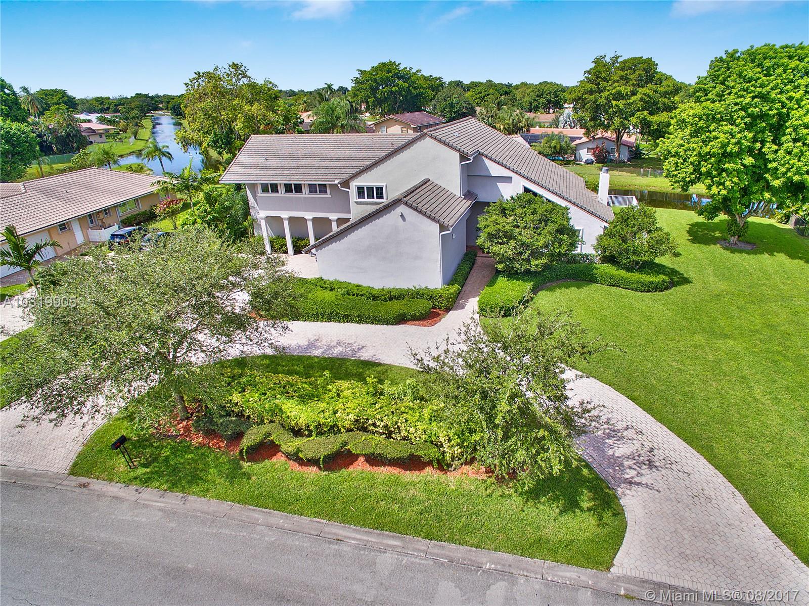Beautiful 4 bedroom + loft, 3.5 bath Custom home with 2 car garage situated on large waterfront lot in the heart of Coral Springs. Home has lots of natural light! Circular driveway offers plenty of parking. Enter through front double door into living area that boosts wood beams, wood flooring, fireplace, shaker style walls & crown molding, Volume ceilings. Updated open kitchen with wood cabinets, top notch SS appliances, Extra large French doors leading to beautiful fenced outdoor pool/ Spa/ patio area perfect for entertaining. Picture window over sink, island has flat top stove with designer pan rack above. Beautiful HUGE master Suite downstairs overlooks pool with Roman tub and 2 showers . Plantation shutters, indoor laundry room with front loading washer/ dryer. No HOA. Must See!