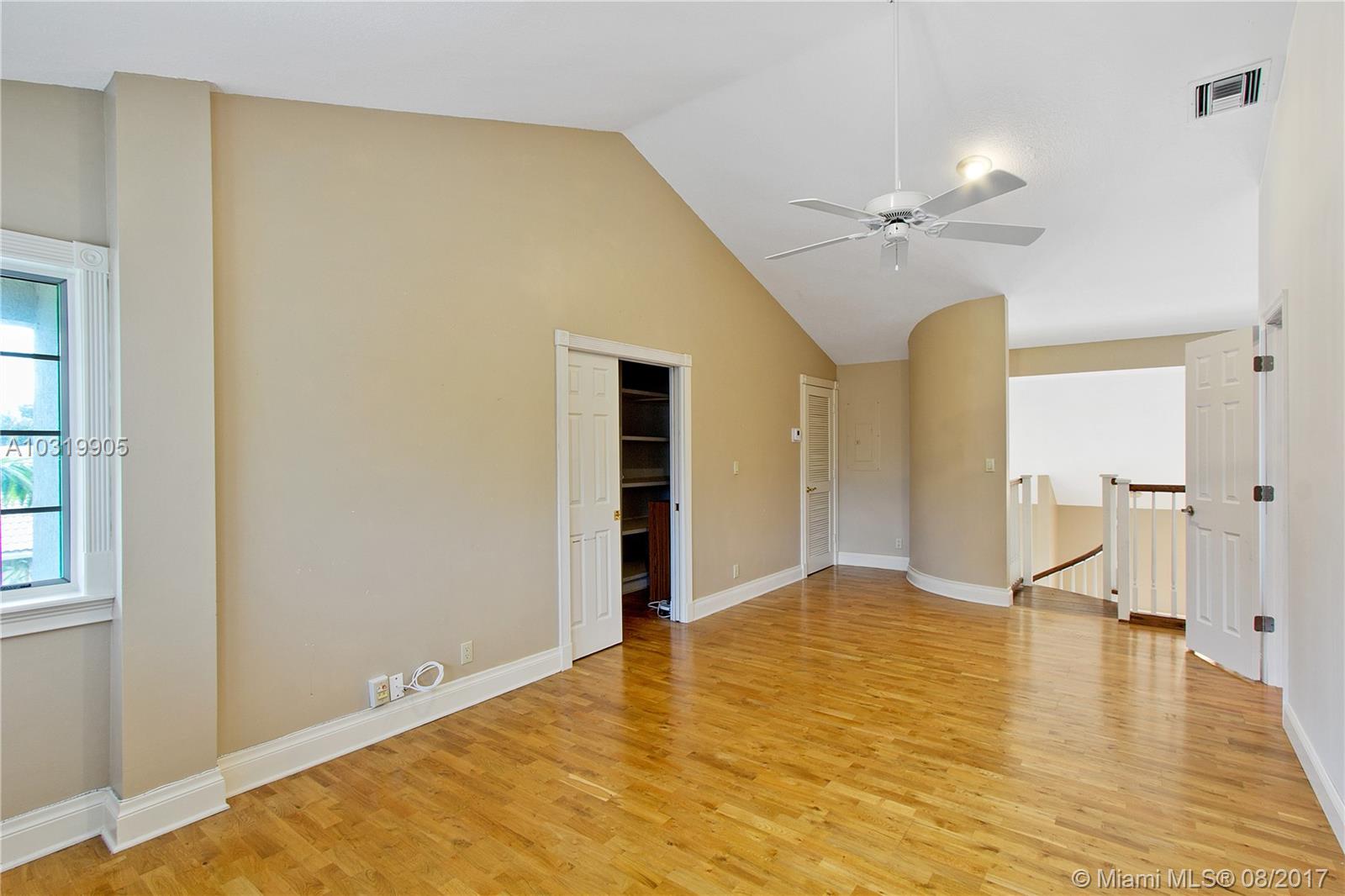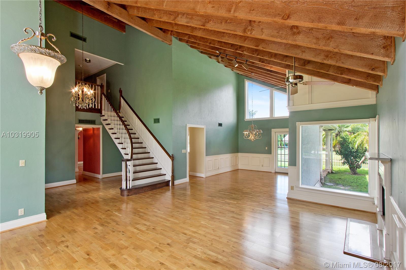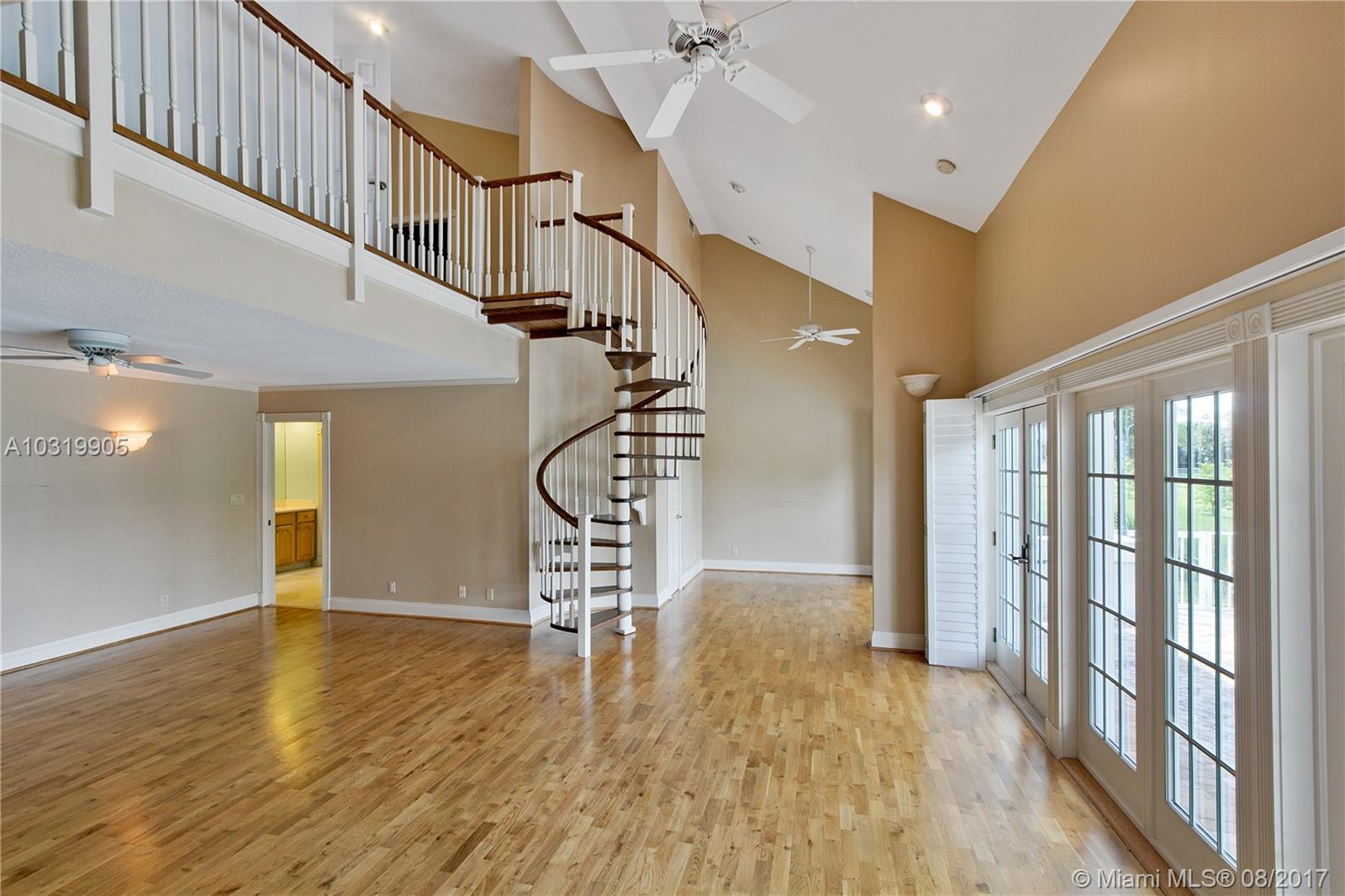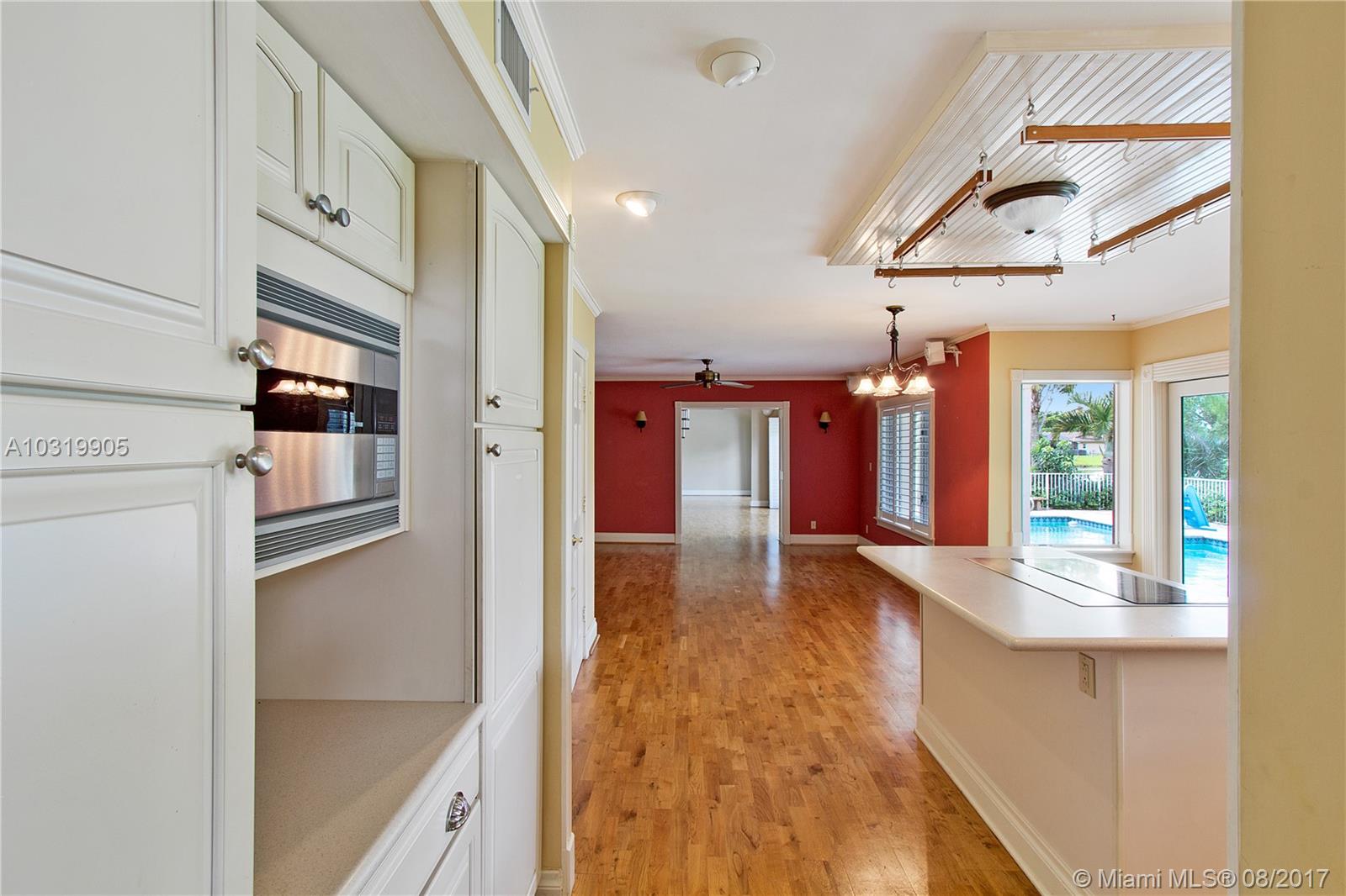 Beautiful 4 bedroom + loft, 3.5 bath Custom home with 2 car garage situated on large waterfront lot in the heart of Coral Springs. Home has lots of natural light! Circular driveway offers plenty of parking. Enter through front double door into living area that boosts wood beams, wood flooring, fireplace, shaker style walls & crown molding, Volume ceilings. Updated open kitchen with wood cabinets, top notch SS appliances, Extra large French doors leading to beautiful fenced outdoor pool/ Spa/ patio area perfect for entertaining. Picture window over sink, island has flat top stove with designer pan rack above. Beautiful HUGE master Suite downstairs overlooks pool with Roman tub and 2 showers . Plantation shutters, indoor laundry room with front loading washer/ dryer. No HOA. Must See!