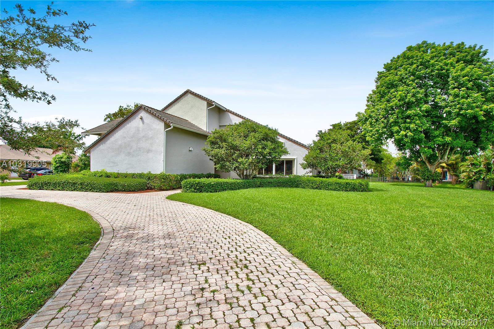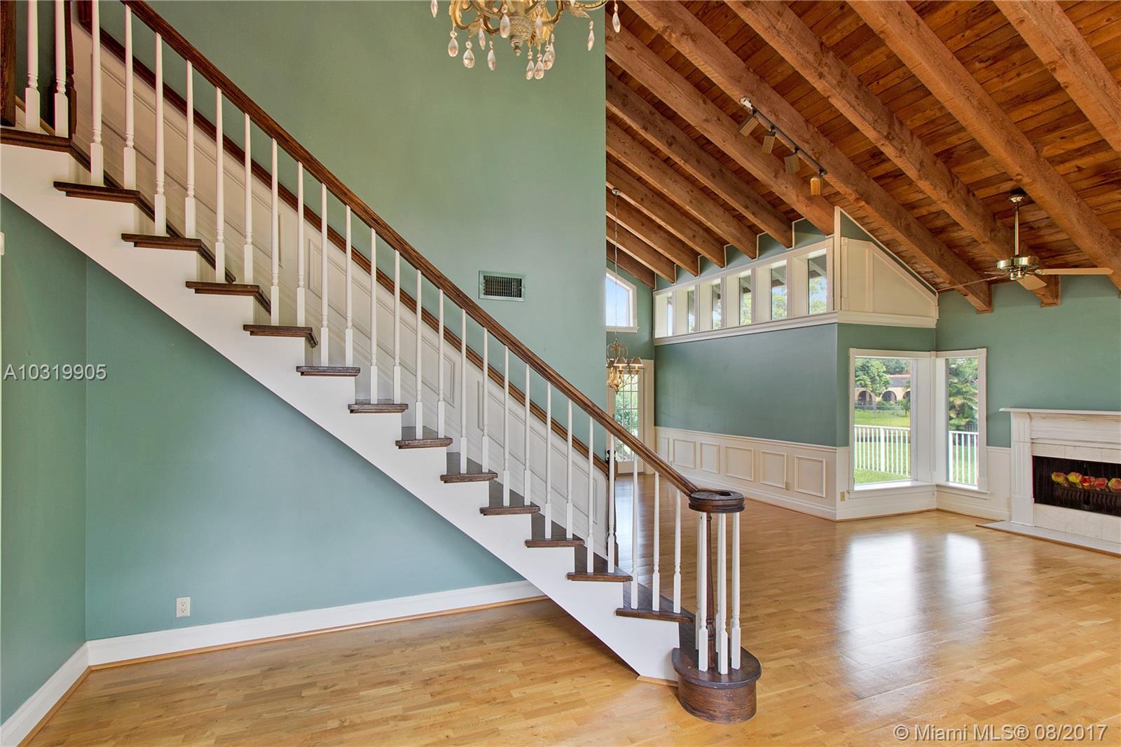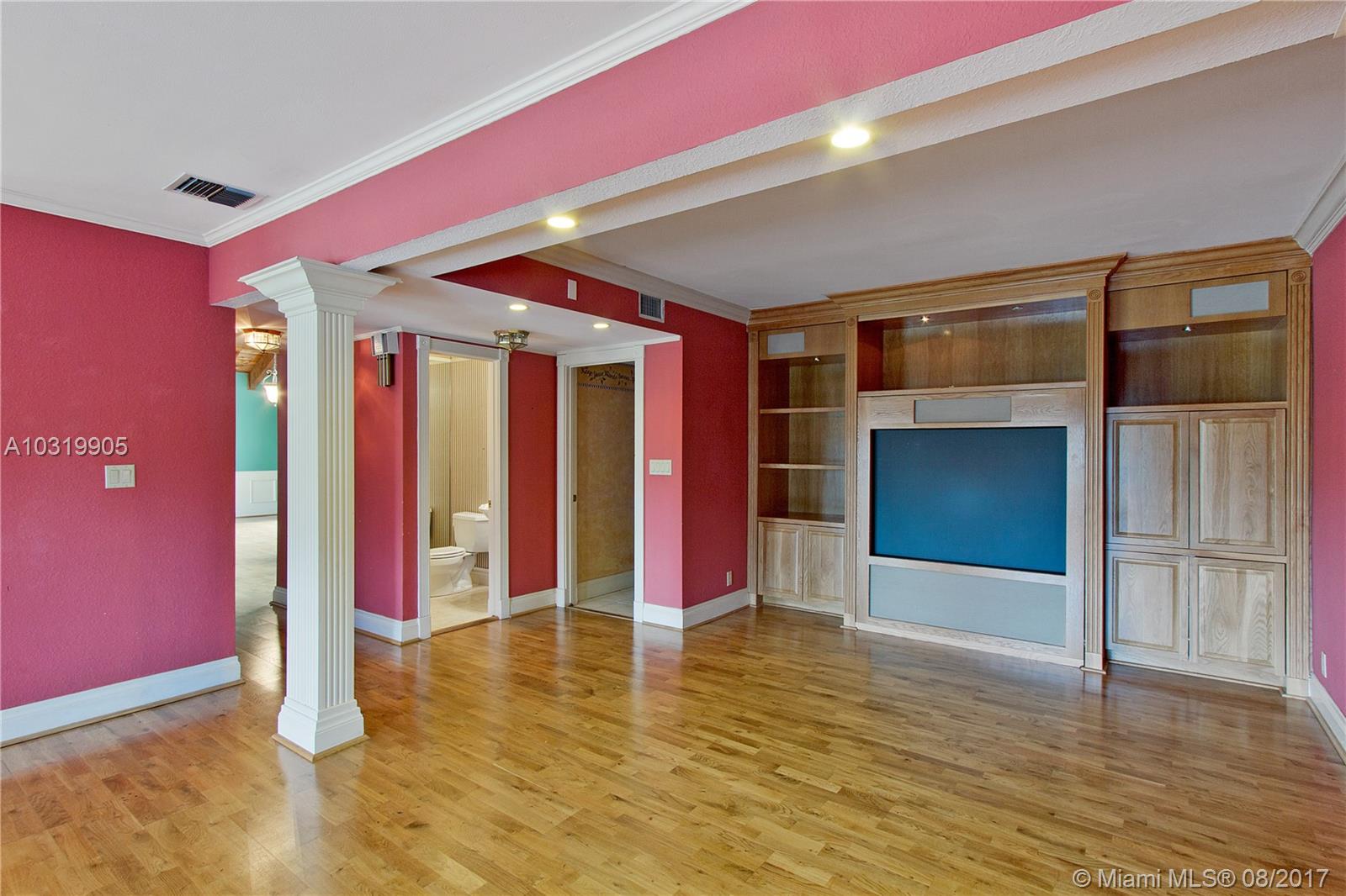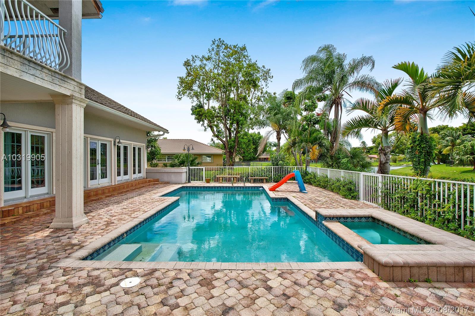 Beautiful 4 bedroom + loft, 3.5 bath Custom home with 2 car garage situated on large waterfront lot in the heart of Coral Springs. Home has lots of natural light! Circular driveway offers plenty of parking. Enter through front double door into living area that boosts wood beams, wood flooring, fireplace, shaker style walls & crown molding, Volume ceilings. Updated open kitchen with wood cabinets, top notch SS appliances, Extra large French doors leading to beautiful fenced outdoor pool/ Spa/ patio area perfect for entertaining. Picture window over sink, island has flat top stove with designer pan rack above. Beautiful HUGE master Suite downstairs overlooks pool with Roman tub and 2 showers . Plantation shutters, indoor laundry room with front loading washer/ dryer. No HOA. Must See!