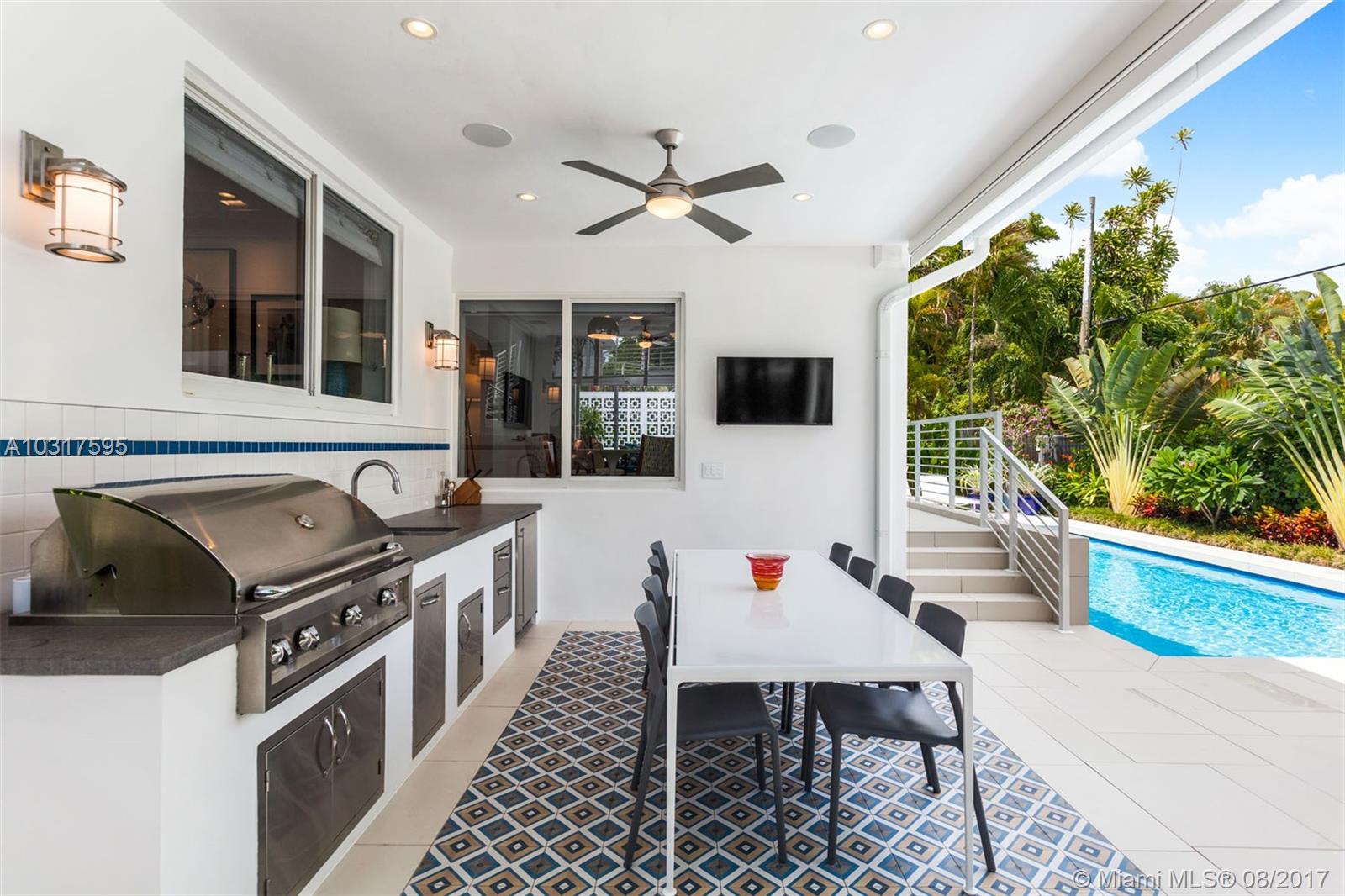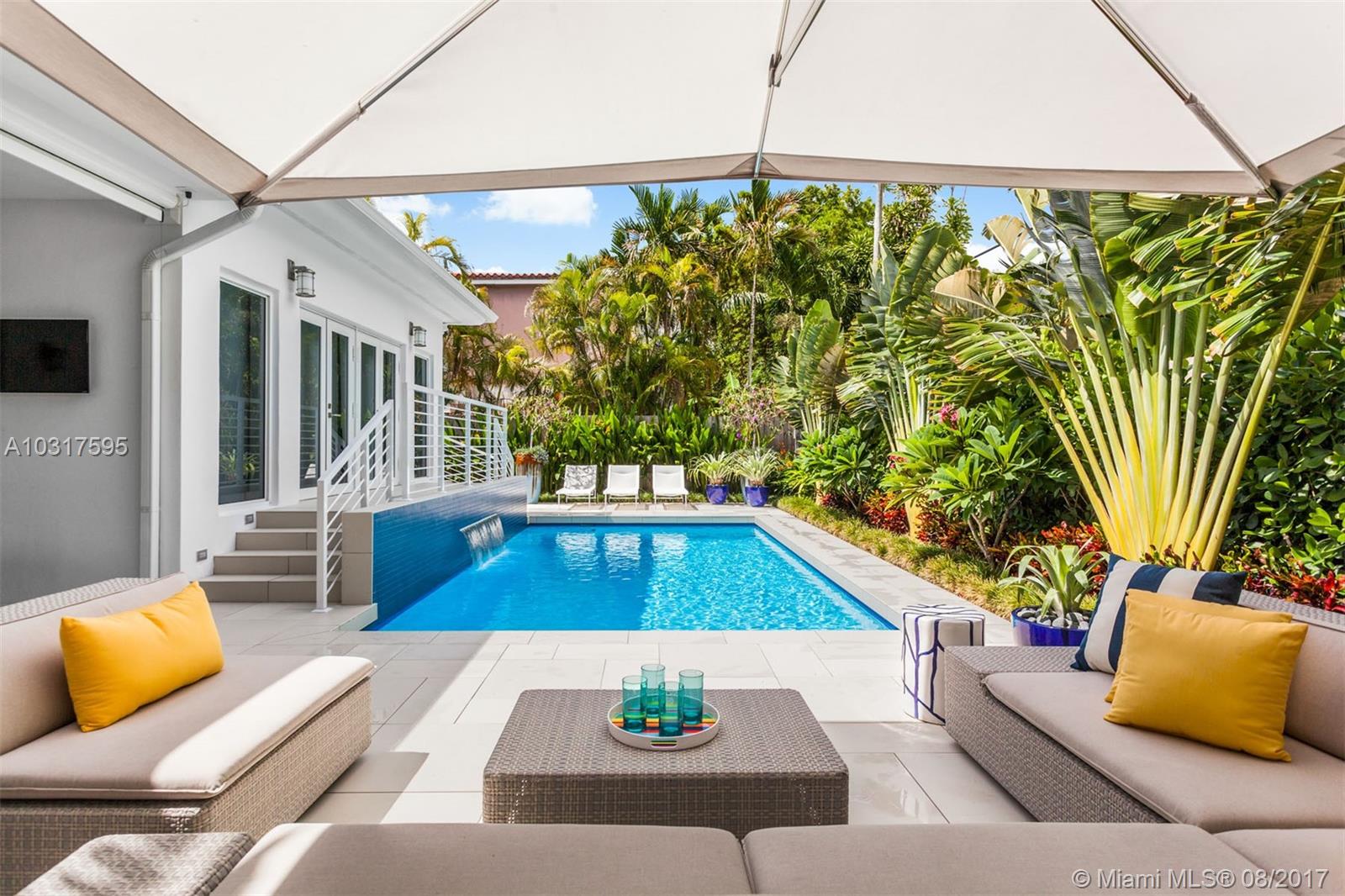Located in the heart of Miami Beach, this impeccably designed Mid-Century Modern home by architect Gilbert Fein combines classic mid-century architecture along with smart home technology. Extensively remodeled with the finest materials, attention to detail & custom workmanship this 3 bedroom, 3+1 bathroom home has been meticulously designed to offer stunning outdoor views, intimate spaces and luxurious finishes throughout. Step inside the walled in courtyard of this gated home and enjoy ultimate privacy