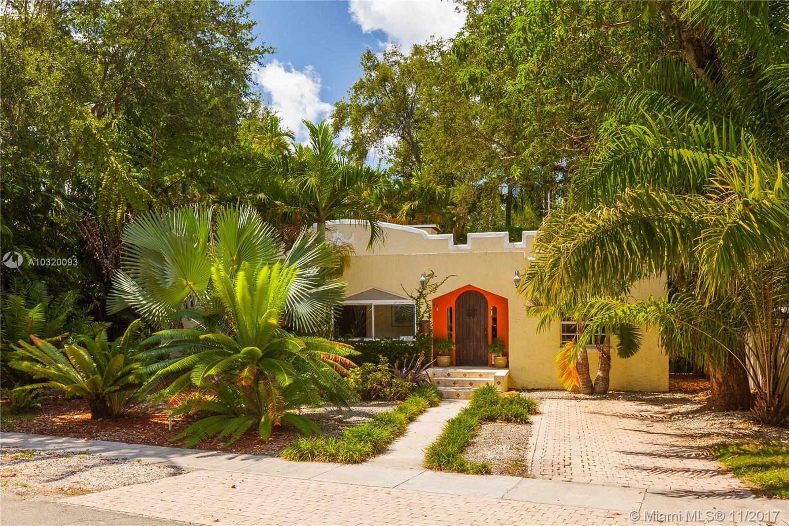 Live in Miami's most desired neighborhood of North Coconut Grove. Old Spanish 4 bedroom/3 bathroom home with separate 1/1 guest house on quiet street. Spacious master suite with large walk in closet and updated bathroom. Entry foyer brings lots of natural light into the home, wood floors throughout, working fireplace, and many architectural details in this well maintained property surrounded by lush foliage
