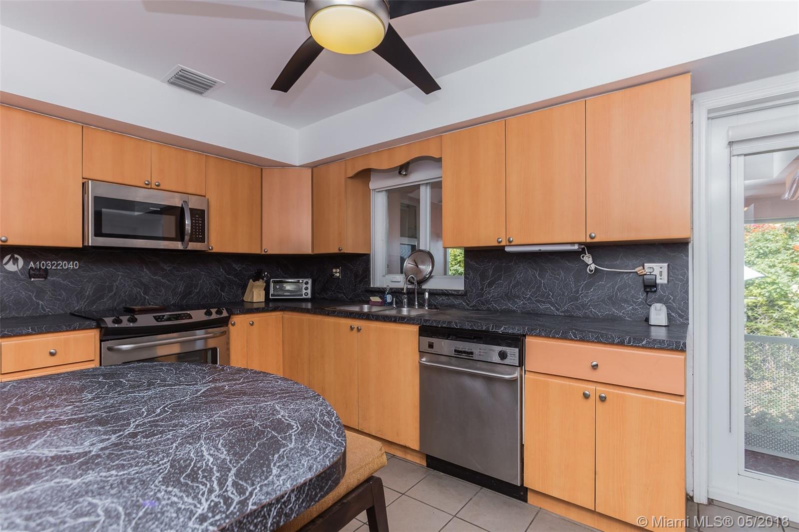 Large 3/2 family home on quiet low traffic Miami Shores street. Many recent upgrades including impact windows & dual zone central air/heat. Updated eat-in kitchen. Refinished hardwood floors. Huge family room with tile floors & fireplace. Split bedroom plan. Garage with washer & dryer. Whole house generator. Newer tile roof. Private fenced yard with screened porch. Alley access to garage & paved parking accessed by remote controlled rolling gate. Close to Barry U. Value priced for quick sale.